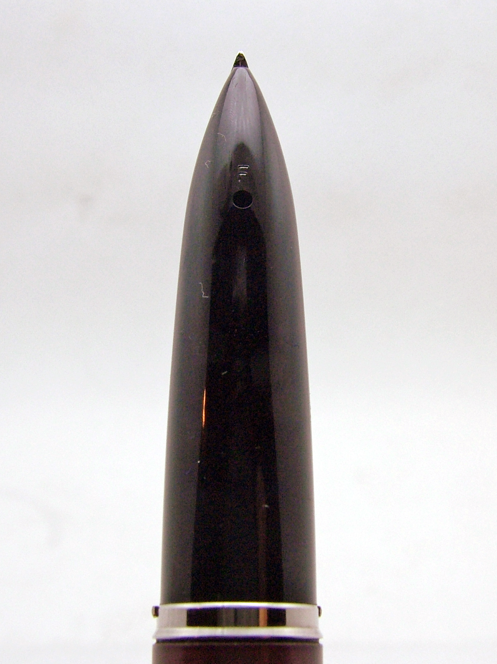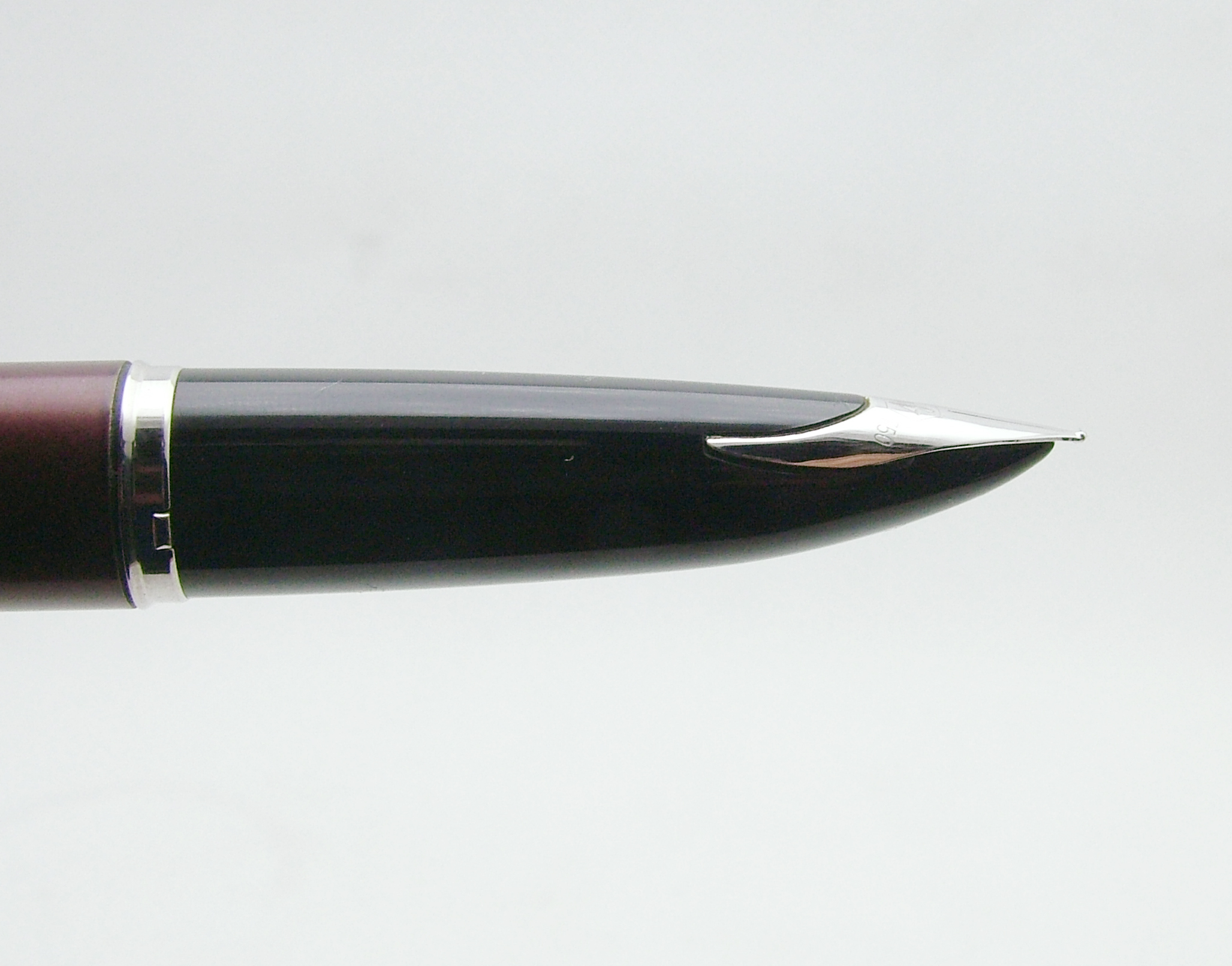 La penna è in resina verniciata di un bel colore amaranto quasi metallizzato.