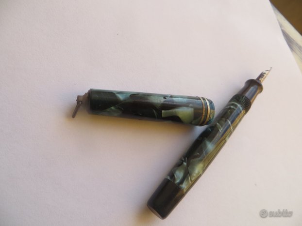 Giorgio1955 ha scritto: sabato 12 settembre 2020, 19:38 La tipologia di penna fotografata era molto comune negli anni '40 primi anni '50 del secolo scorso: celluloide, pennino d'oro per le top acciaio per le comuni, alimentatore in ebanite, caricamento pulsante di fondo o levetta; perchè celluloide ed ebanite? Perchè le materie plastiche non c'erano ancora. Il Prof. Natta il Moplen lo inventò fine anni '50! Una particolarità la tua penna è da signora: un anellino invece della clip. Ci si metteva una nappina per abbellimento oppure la si attaccava a una catenina al collo. Saluti.