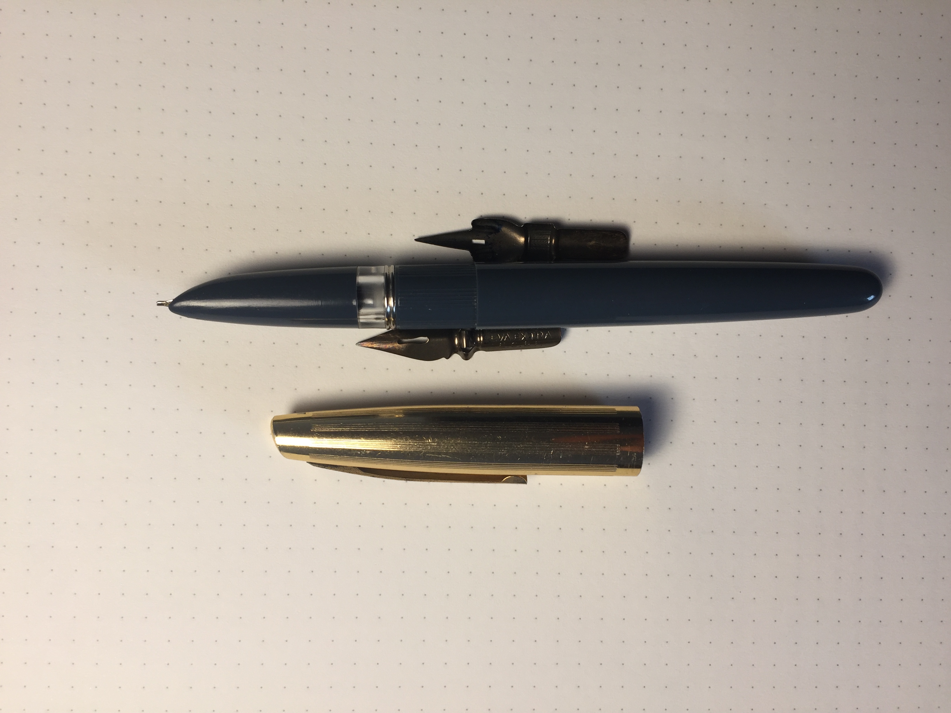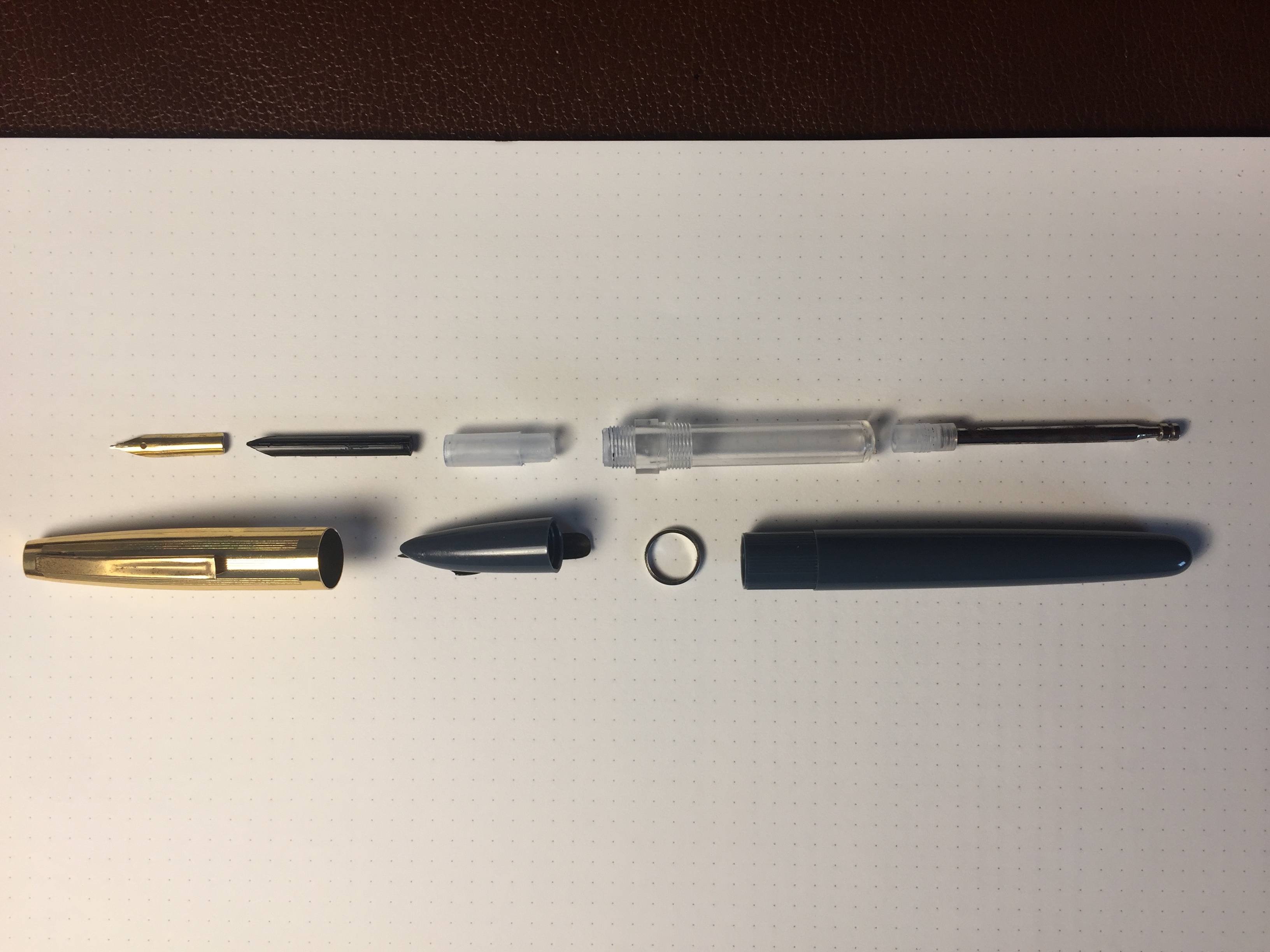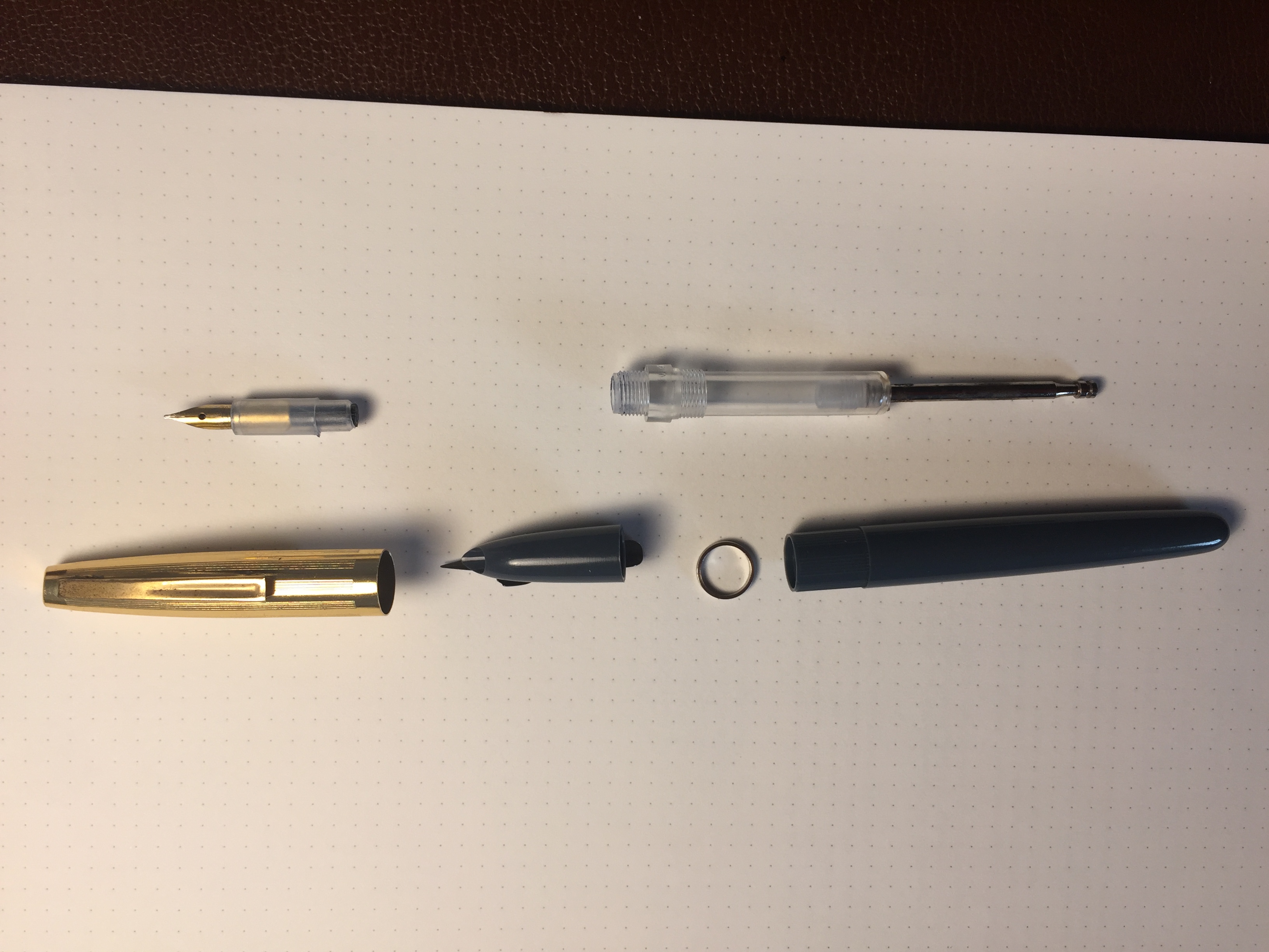 Purtroppo però non la ho mai usata per questo scopo. La comprai già con il pennino rovinato...me ne resi conto subito. A casa diedi una bella pulita alla penna che smontai con facilità. La provai e scriveva tutto sommato...c'era solo il pennino da raddrizzare. Lo raddrizzai e dopo qualche prova la riposi nel cassetto della scrivania.