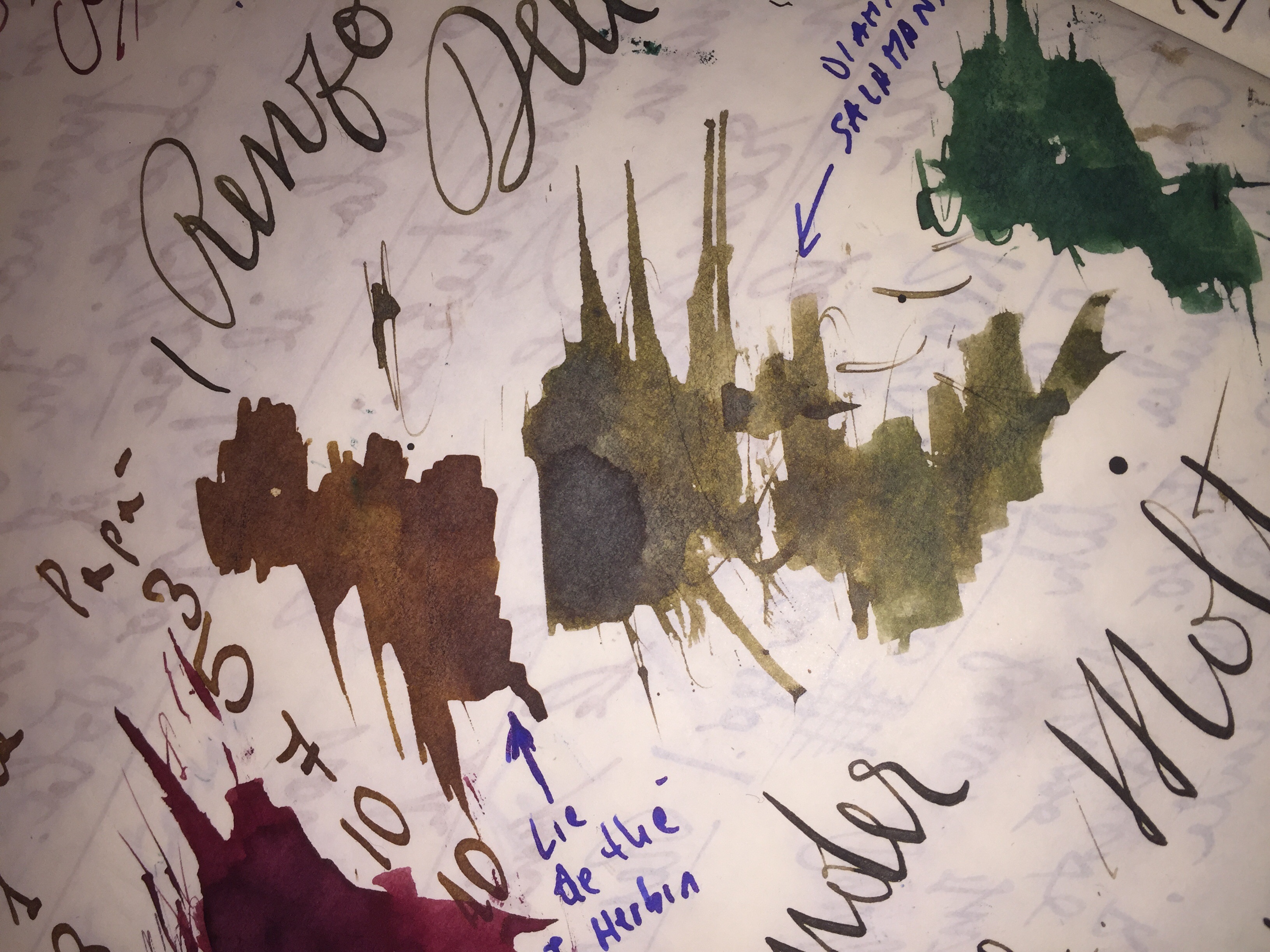 Nonostante abbia un pennino F sembra un M per quanto allarga il tratto, però restituisce un bel colore. Forse su penne con flusso meno abbondante lo preferisco anche se sembrea un nero perchè perde i riflessi marroni.