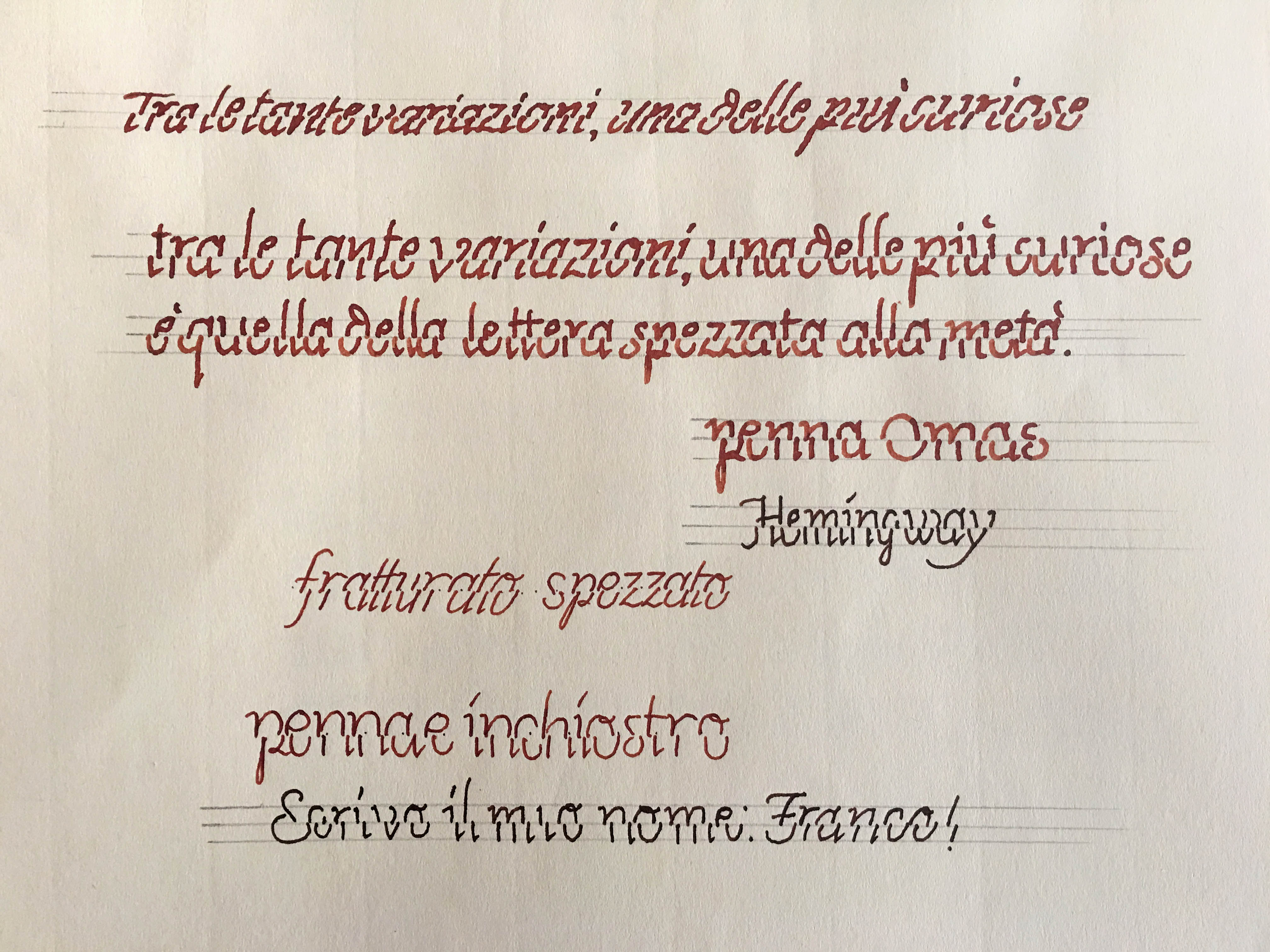 Non ritrovo il libretto, ma ricordo che l'"esercizio" era eseguito con un pennino a punta tronca.