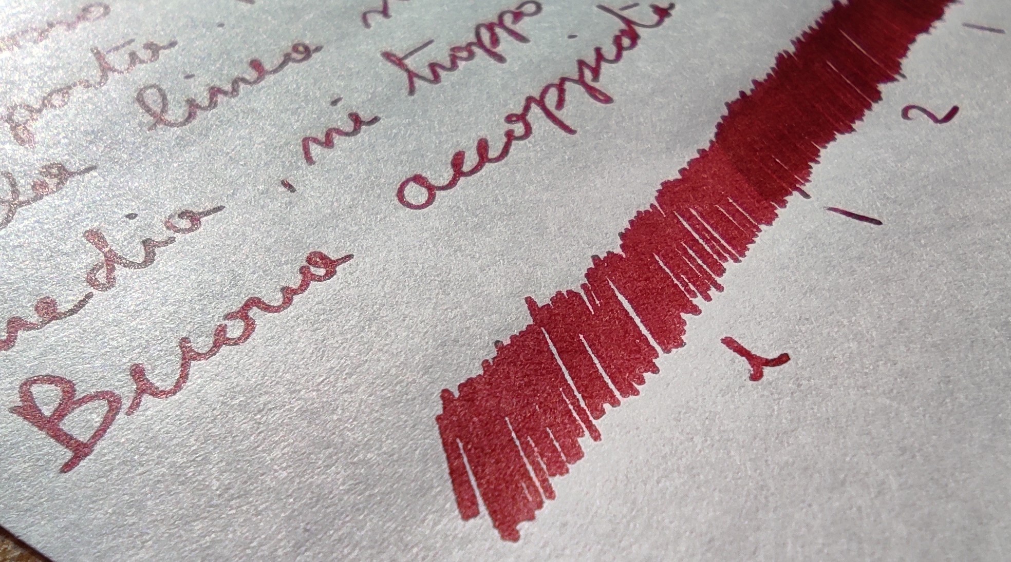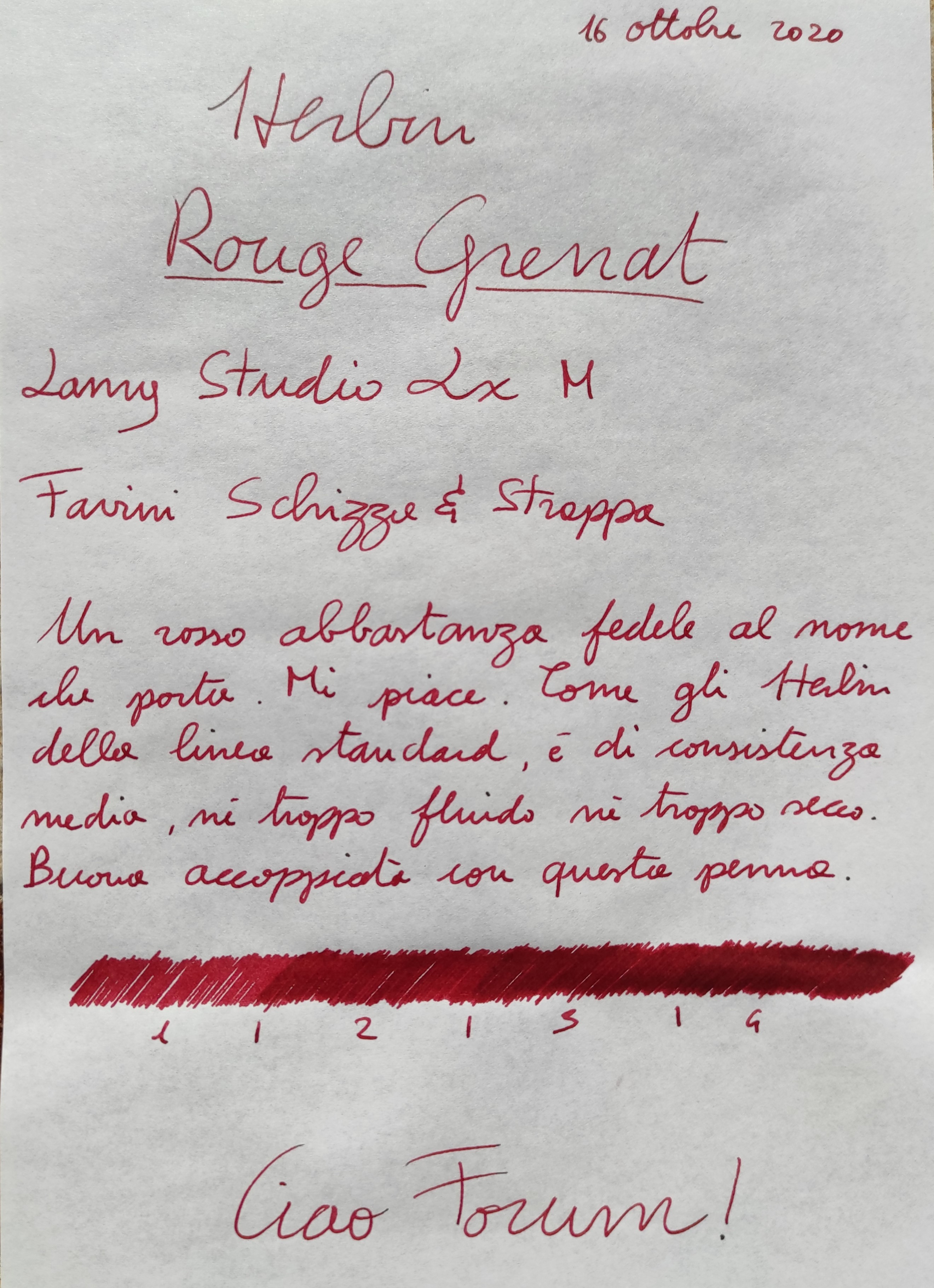 Il Rouge Grenat è un rosso che pensavo di acquistare, quindi queste foto sono molto utili per me. Rosso promosso, anche se il mio rosso per far risaltare le cose, è il Diamine Poppy Red. Quest'ultimo lo trovo molto adatto per le correzioni, da prof, il quale cerco di diventare. Intanto, il Rouge Grenat è nella lista dei futuri acquisti