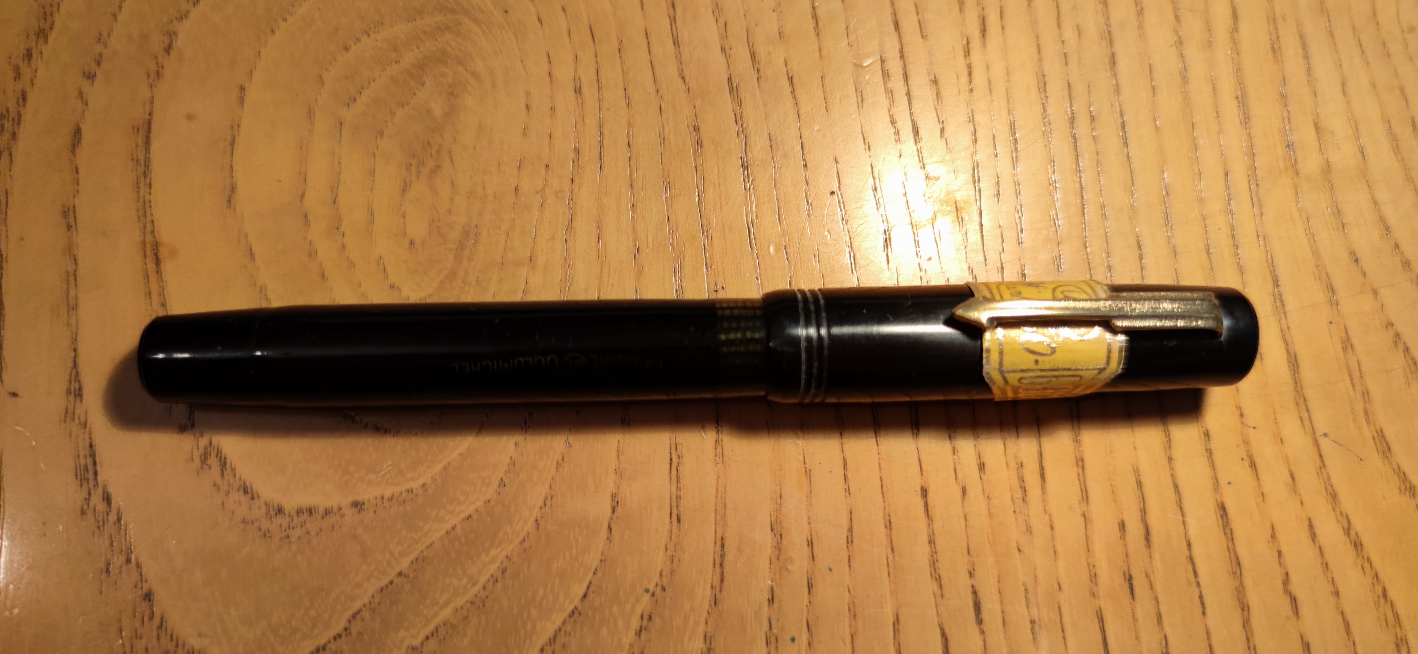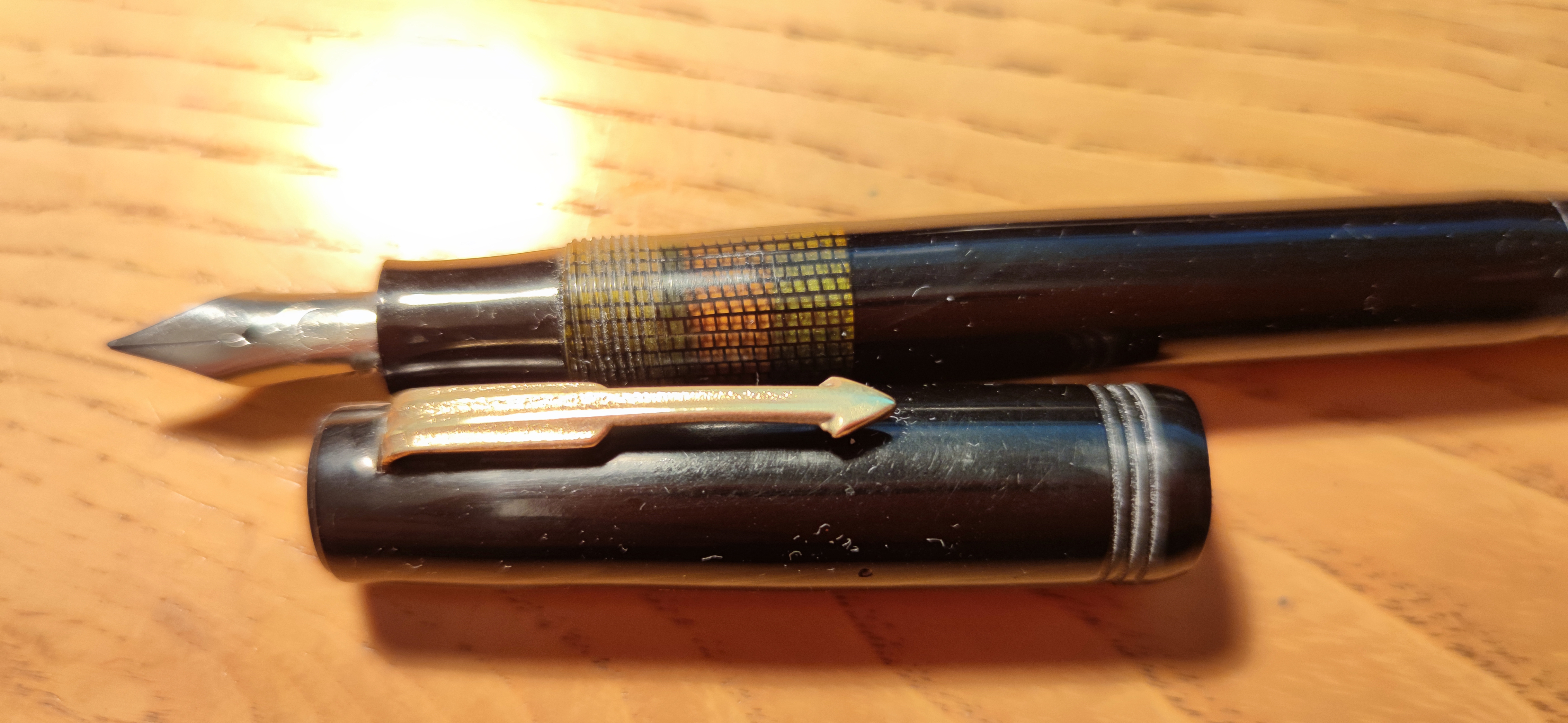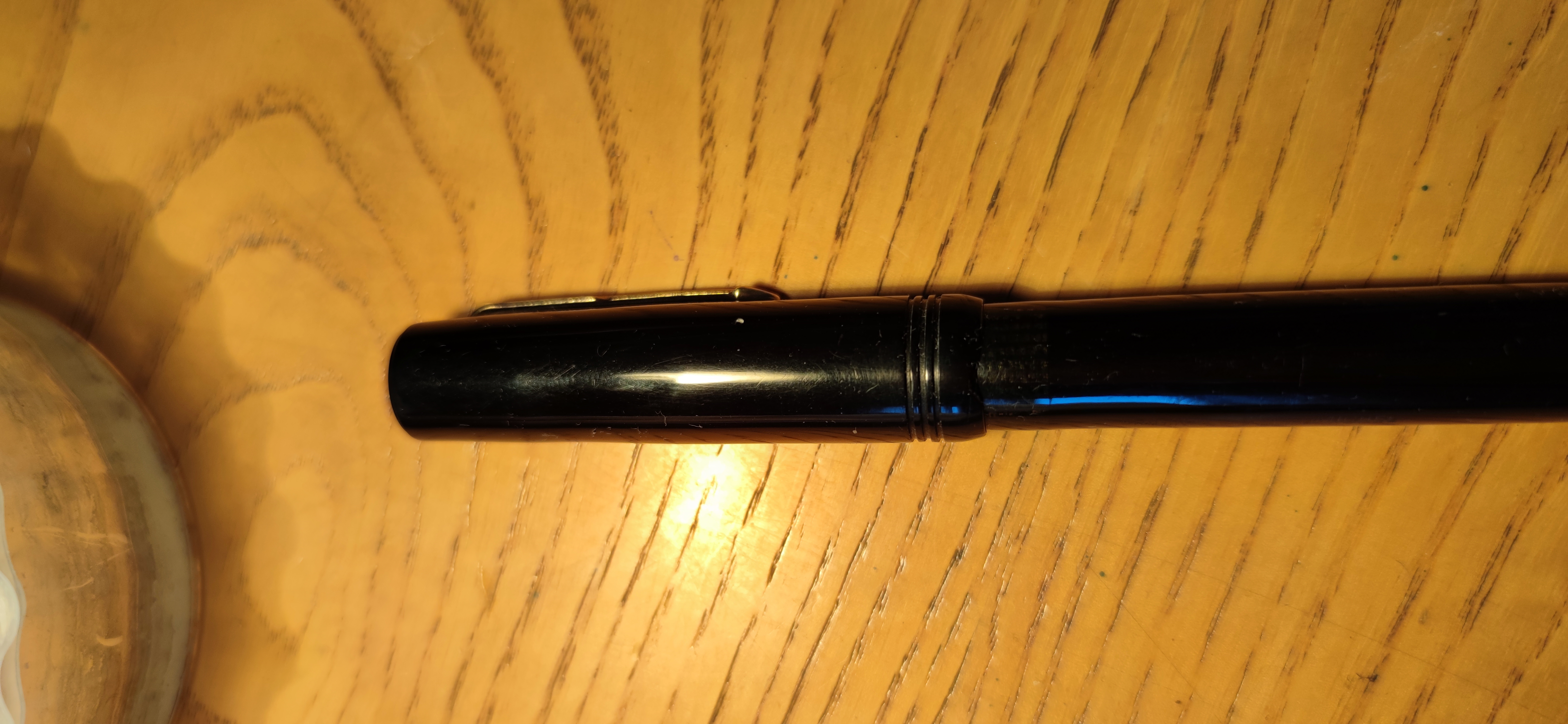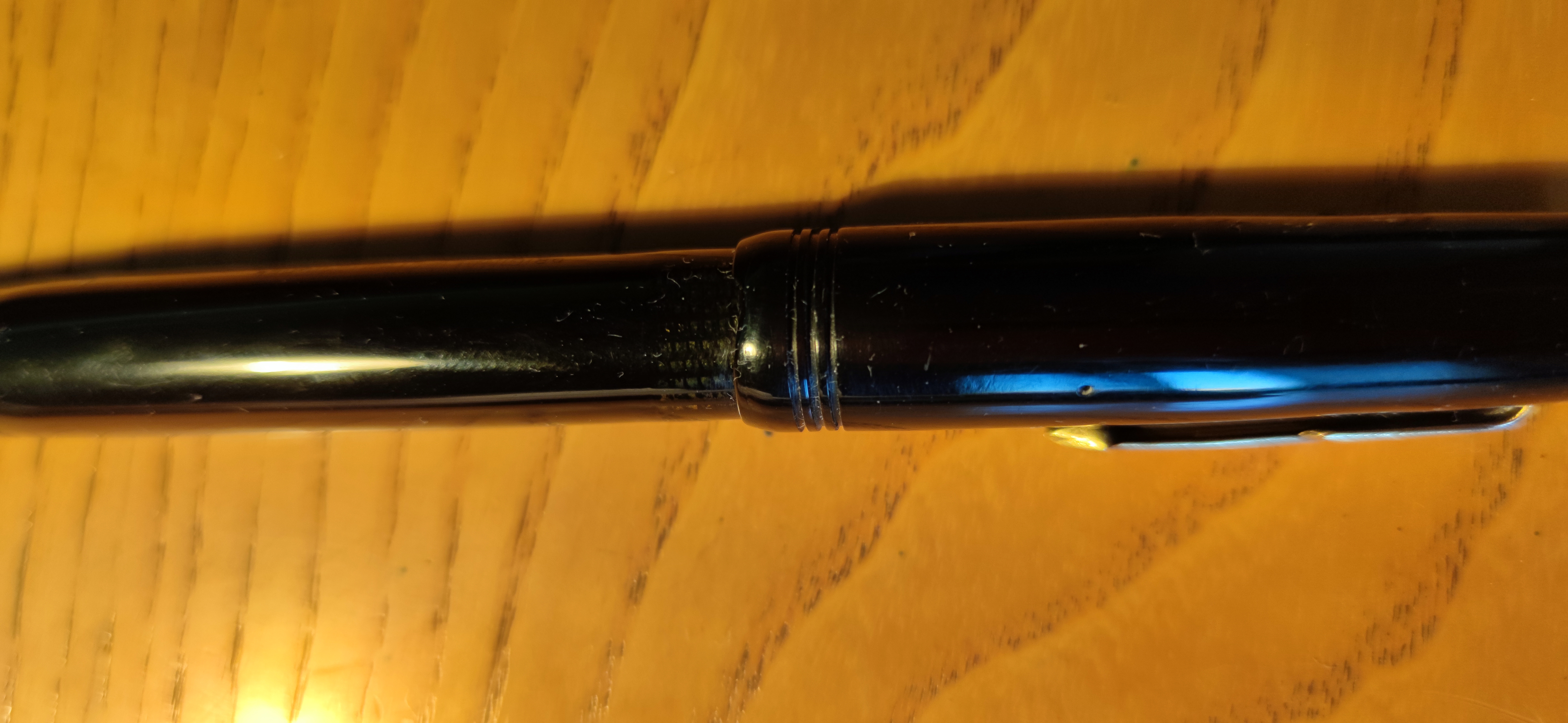 E' possibile che le verette non ci fossero. Sul wiki c'è in una delle pagina di catalogo scansionate, una penna abbastanza somigliante, ma è del dopoguerra, e le penne con le verette solo disegnate si trovano in genere solo nel periodo bellico. Dalle foto non si distingue bene la parte (non è bene a fuoco), però ci sta anche che ci fossero e se ne siano andate solo che essendo praticamente nuova e con la fascetta mi pareva meno probabile.