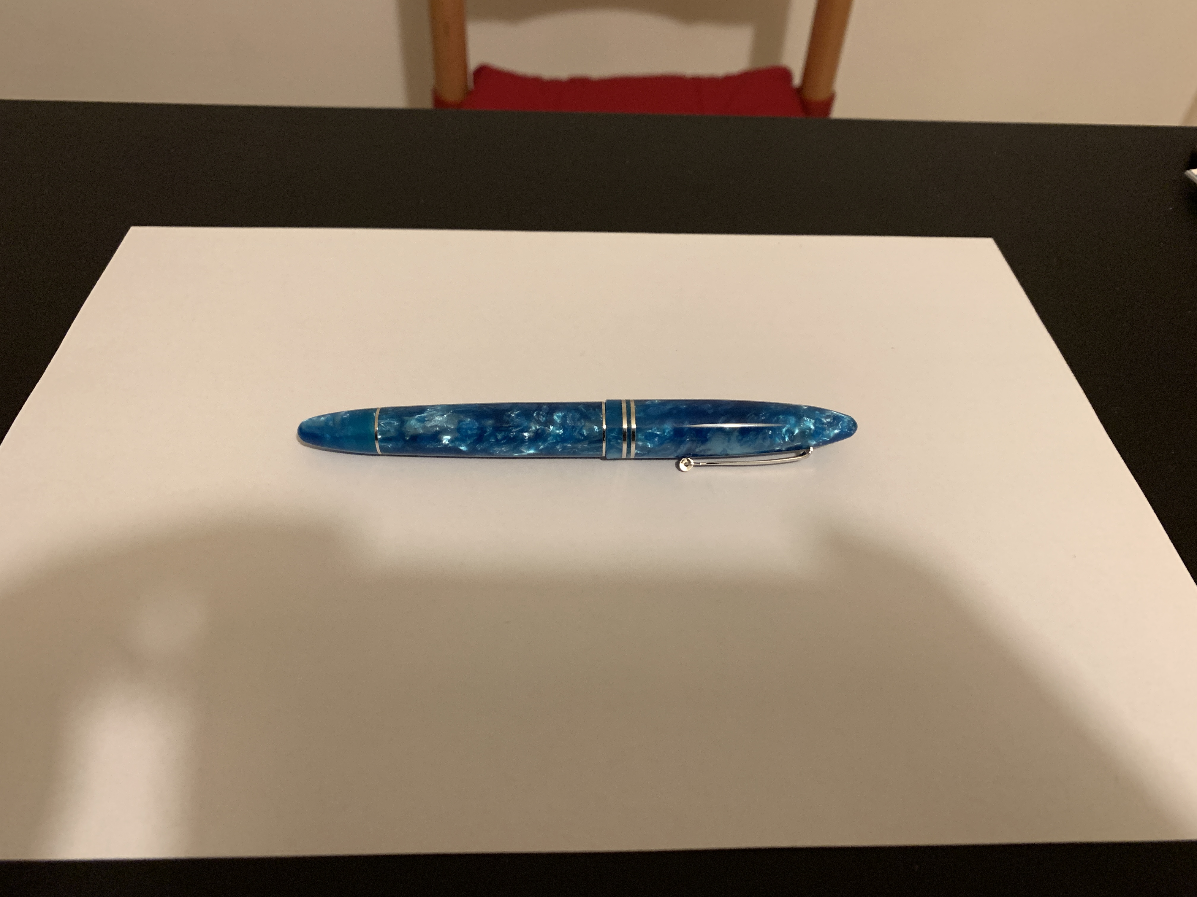 Per confronto inserisco una foto con alcune delle penne che possiedo con, dall'alto in basso: Aurora 88 big, Sailor 1911 Large, Montblanc 146, Leonardo Officine Italiana Furore, Montblanc 149. Mentre la forma è decisamente in linea con le altre è sicuramente quella che spicca per fantasia del colore