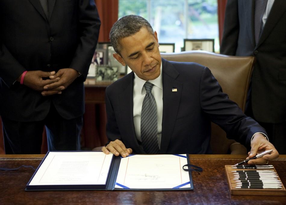 In effetti la consuetudine di apporre la firma su importanti atti legislativi con più penne (usandone ciascuna per ogni lettera o addirittura per parti di lettera del loro nome) è una tradizione ormai quasi secolare dei Presidenti degli Stati Uniti, visto che risale a F.D. Roosevelt.