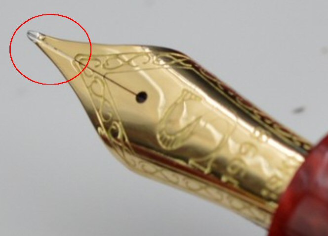 Riguardando bene puo' essere un effetto della foto. A prima vista mi è sembrato che il taglio non fosse centrato tra le punte e che una fosse piu' indietro dell'altra. Capita talvolta nelle penne vecchie usate molto.