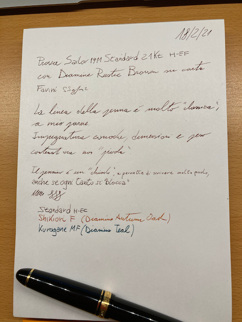 Sono un paio di settimane che la Sailor 1911 Standard 21kt con pennino H-EF è entrata in rotazione, complice anche il portapenne GalenLeather, dedicato alle "mie" tre giapponesine