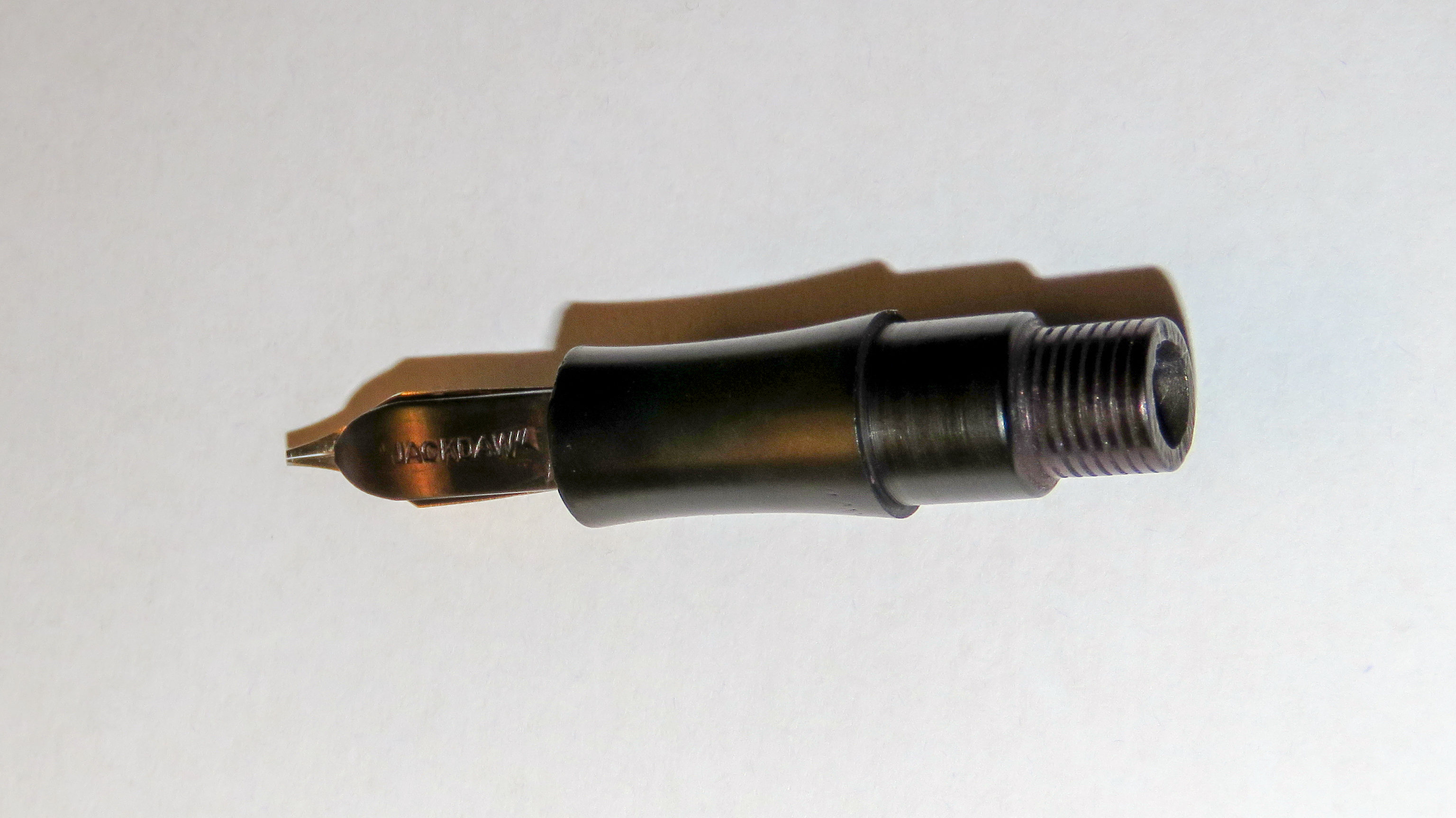 Su questo pennino ho quindi agito in modo tale da ripristinare in qualche modo una "superficie di scrittura" corretta e recuperare una certa precisione del tratto, sicuro tuttavia di non potermi più riavvicinare ad un tratto fine (come marchiato sulla penna), ma limitarmi a qualcosa di "un poco meno di un medio".