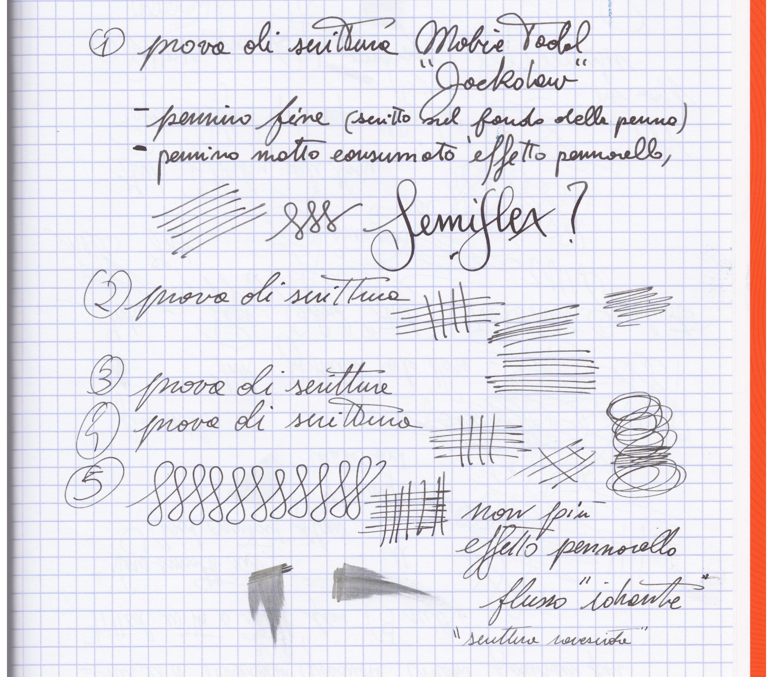 E le relative prove di scrittura, a partire dal tratto simil-pennarello, ingestibile, a qualcosa di più vicino possibile ad un medio-fine.