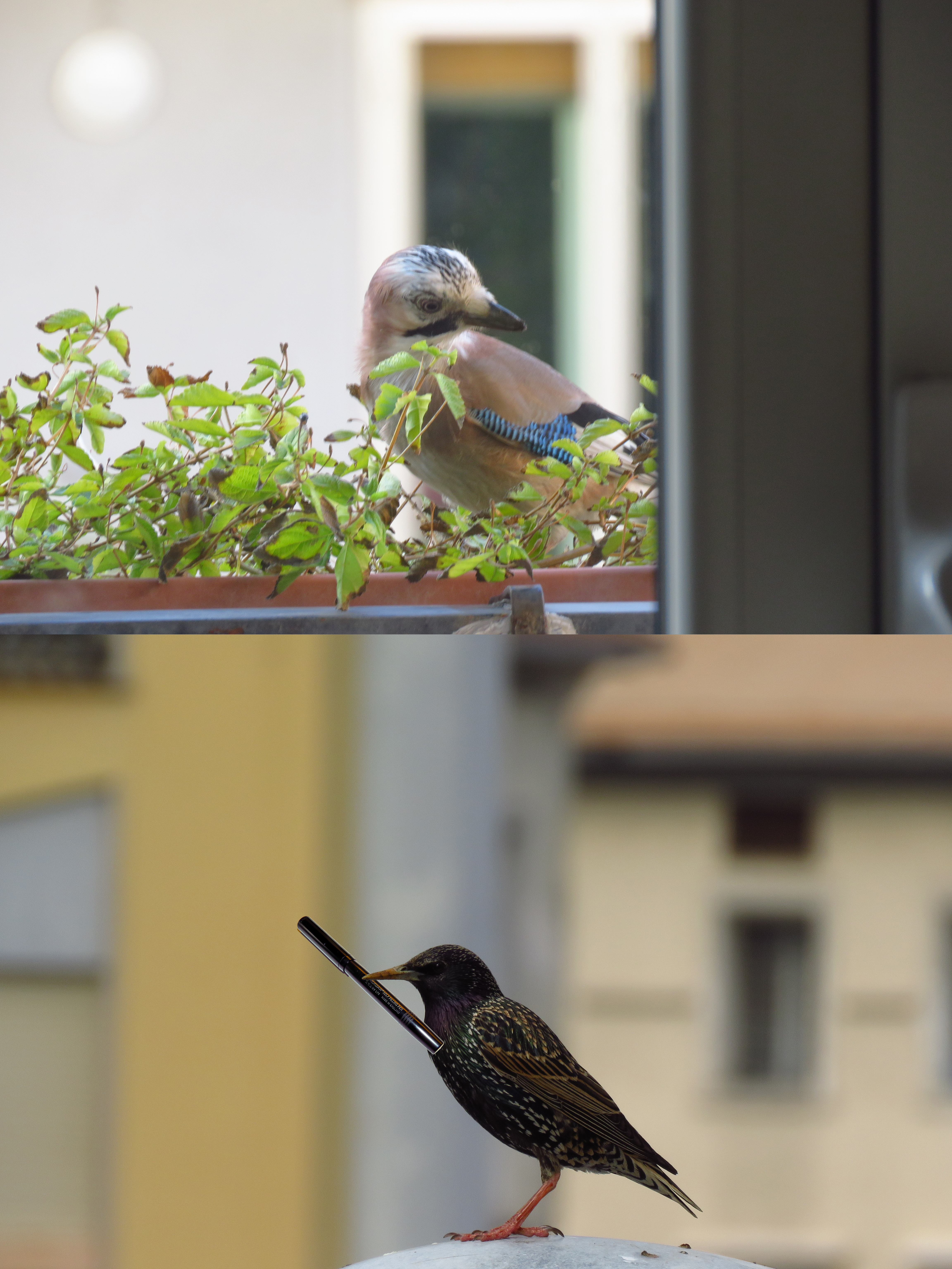 Perdonatemi questo patetico montaggio, la bestiola sotto è uno Storno Comune, non un corvide, ma i pennuti non mi abbandonano neppure al di fuori della scrittura! :lol: