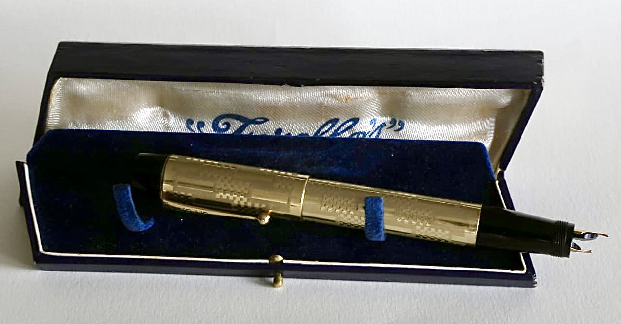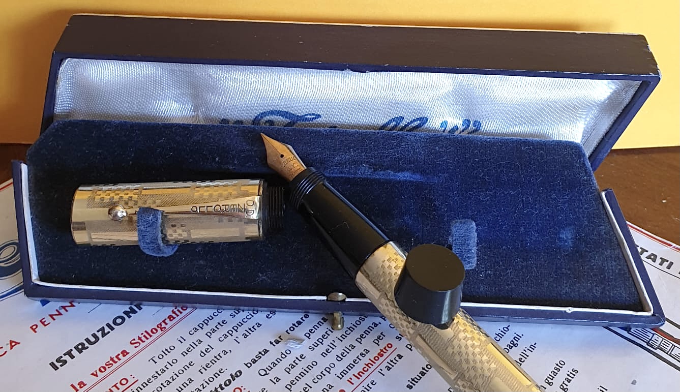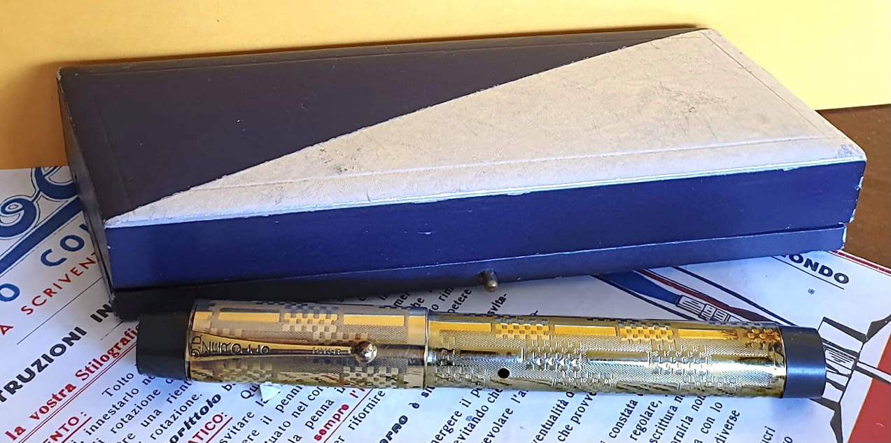 “Last but not least”... splendida Zerollo in ebanite rivestita in ottone laminato oro. Una delle stilografiche più geniali mai progettate, ha circa novant'anni ma non li dimostra!