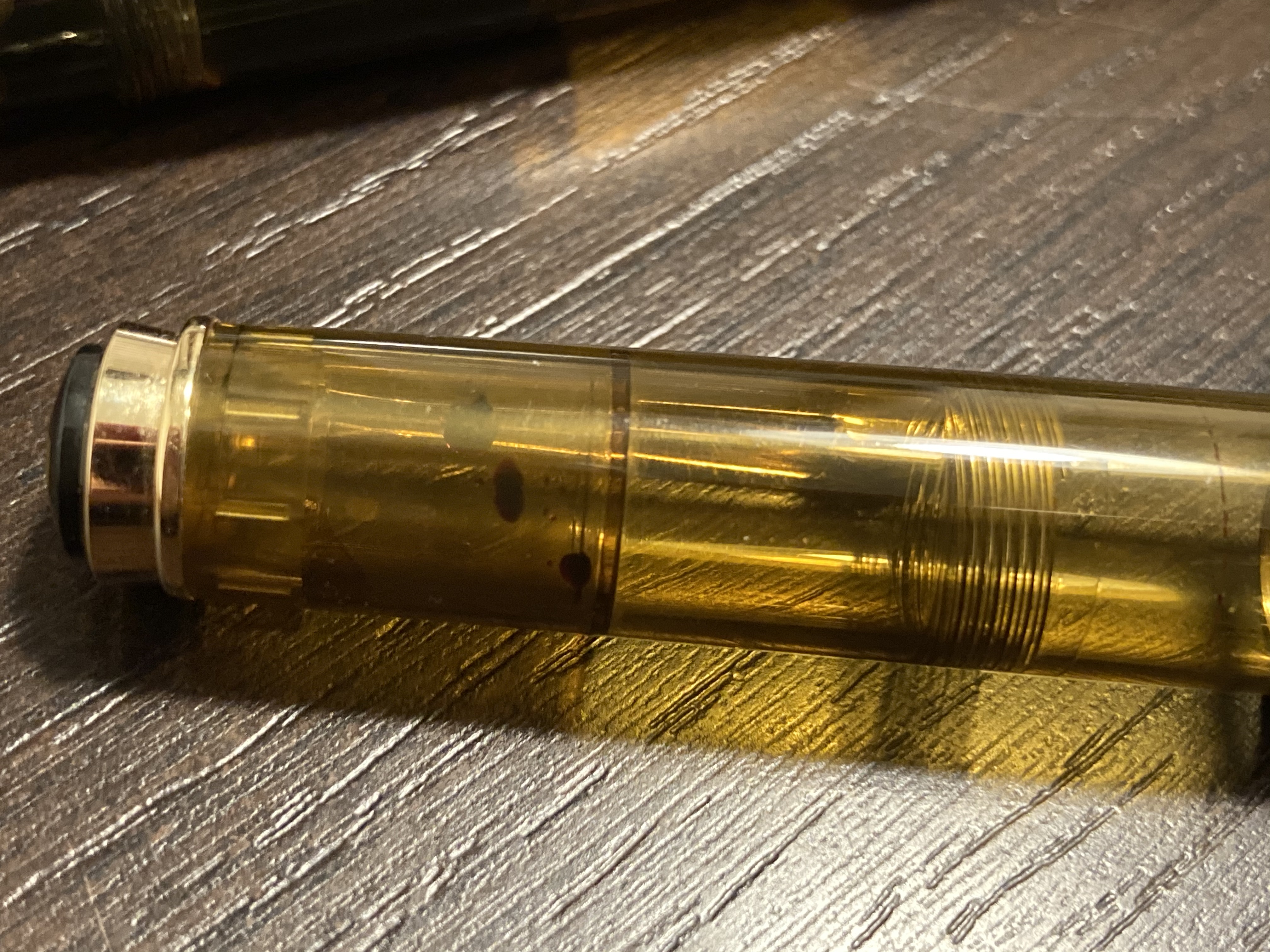Buongiorno a tutti, sapete per caso come smontare il controcappuccio della Pelikan M200? La mia Cognac ha delle gocce d’inchiostro che si vedono in trasparenza, tra tappo e controtappo, che vorrei lavare via. Grazie in anticipo se avete idee!