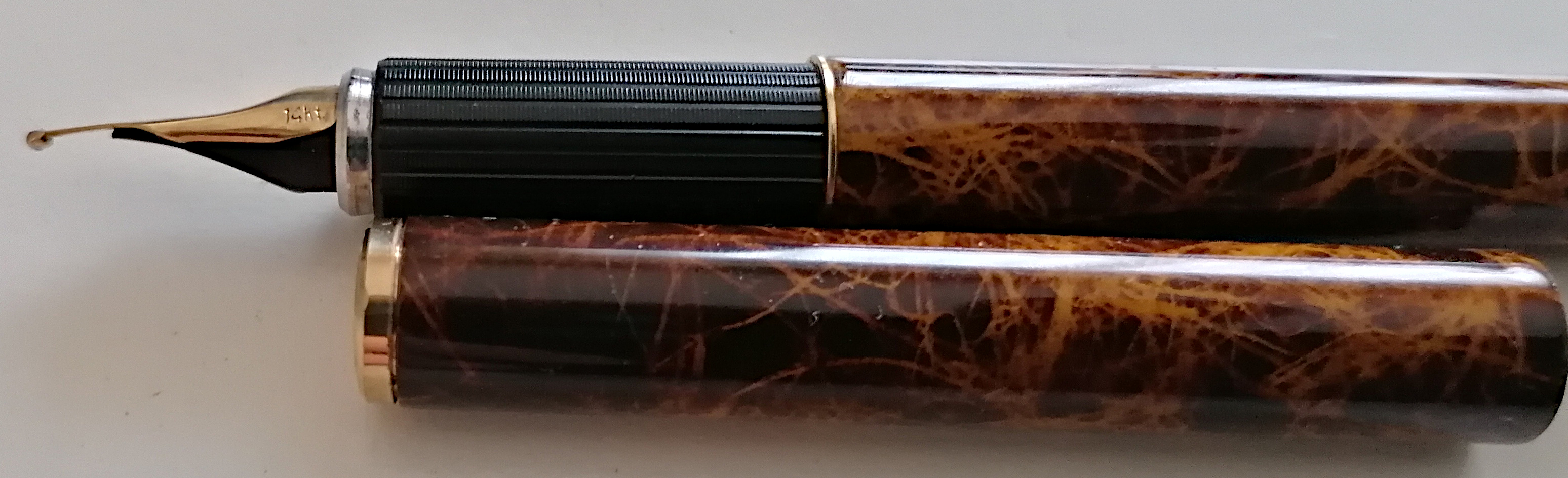 Ti chiedo cortesemente di osservare le mie foto e vedere se c'è qualcosa che mi sfugge nei pezzi separati o se tutto è solo riconducibile al fatto che è montato un pennino rotondo (o Kugel nib che dir si voglia) e quindi me la devo tenere così com'è.