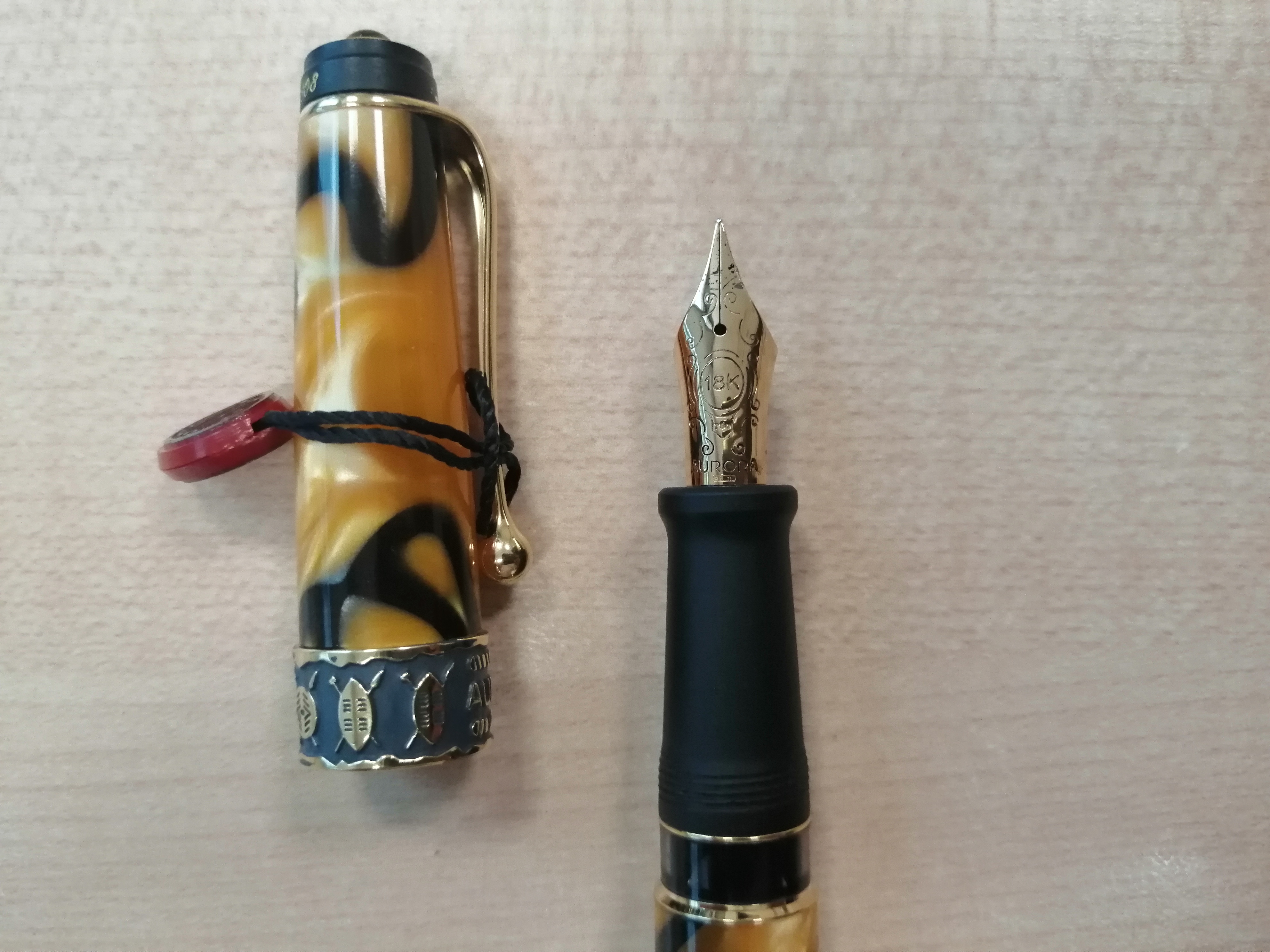 Mettiamo da parte la mia passione per il marchio, che secondo me le suona di santa ragione a tanti marchi blasonati in termini di pennini, fluidità di scrittura, prontezza degli alimentatori (avrei qualcosa da dire invece sulla debolezza dei sistemi di caricamento a pistone… ma ognuno ha i suoi perdonabili difetti), questa penna e’ di per sé un gioiello scrivente. Non solo un gioiello, scrive anche divinamente.