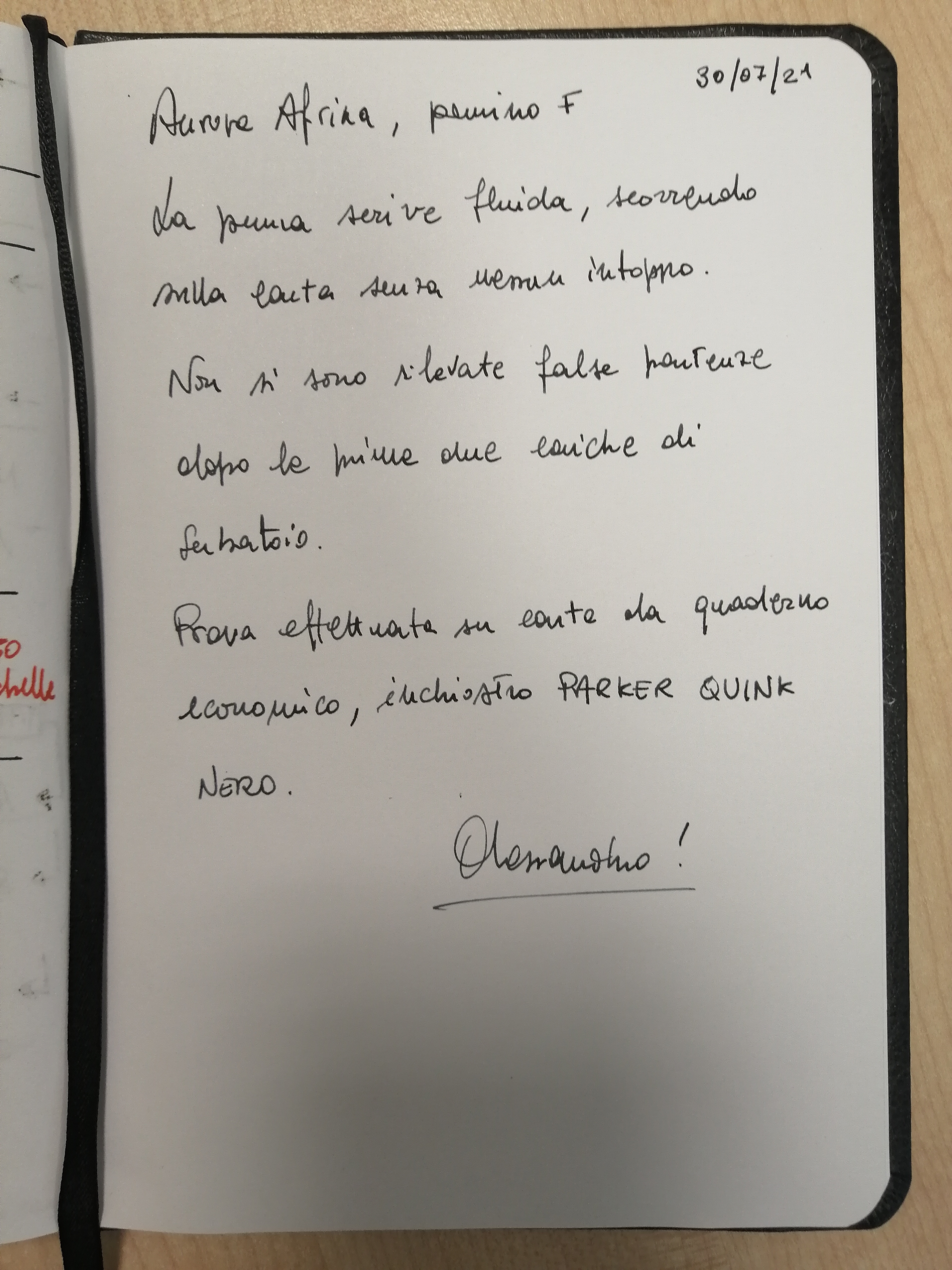 Questa continua la tradizione Aurora, nessuna secchezza nel pennino alla riapertura del cappuccio, nessuna falsa partenza dopo l’inutilizzo.