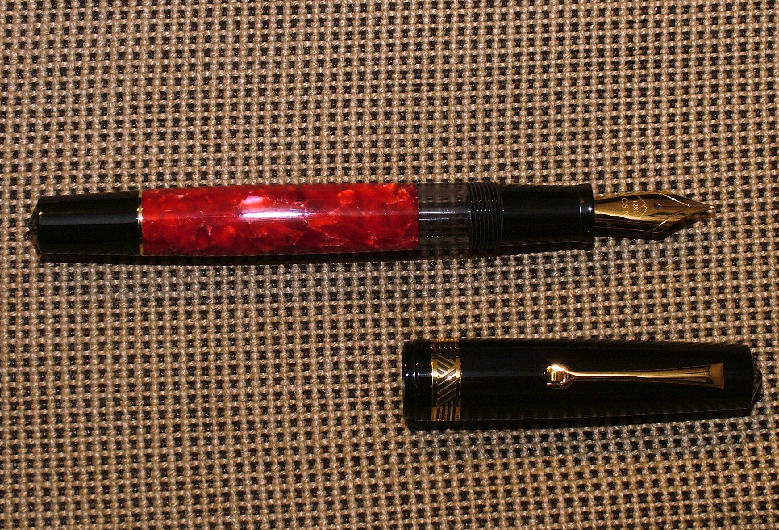 Che dire felicissimo di questa penna che già conoscevo avendone presa una  ancor prima che uscisse sul mercato, ma questa mi ha colpito in modo particolare per la colorazione, l'accoppiamento del nero col rosso marmorizzato, che dire mi ha incantato.