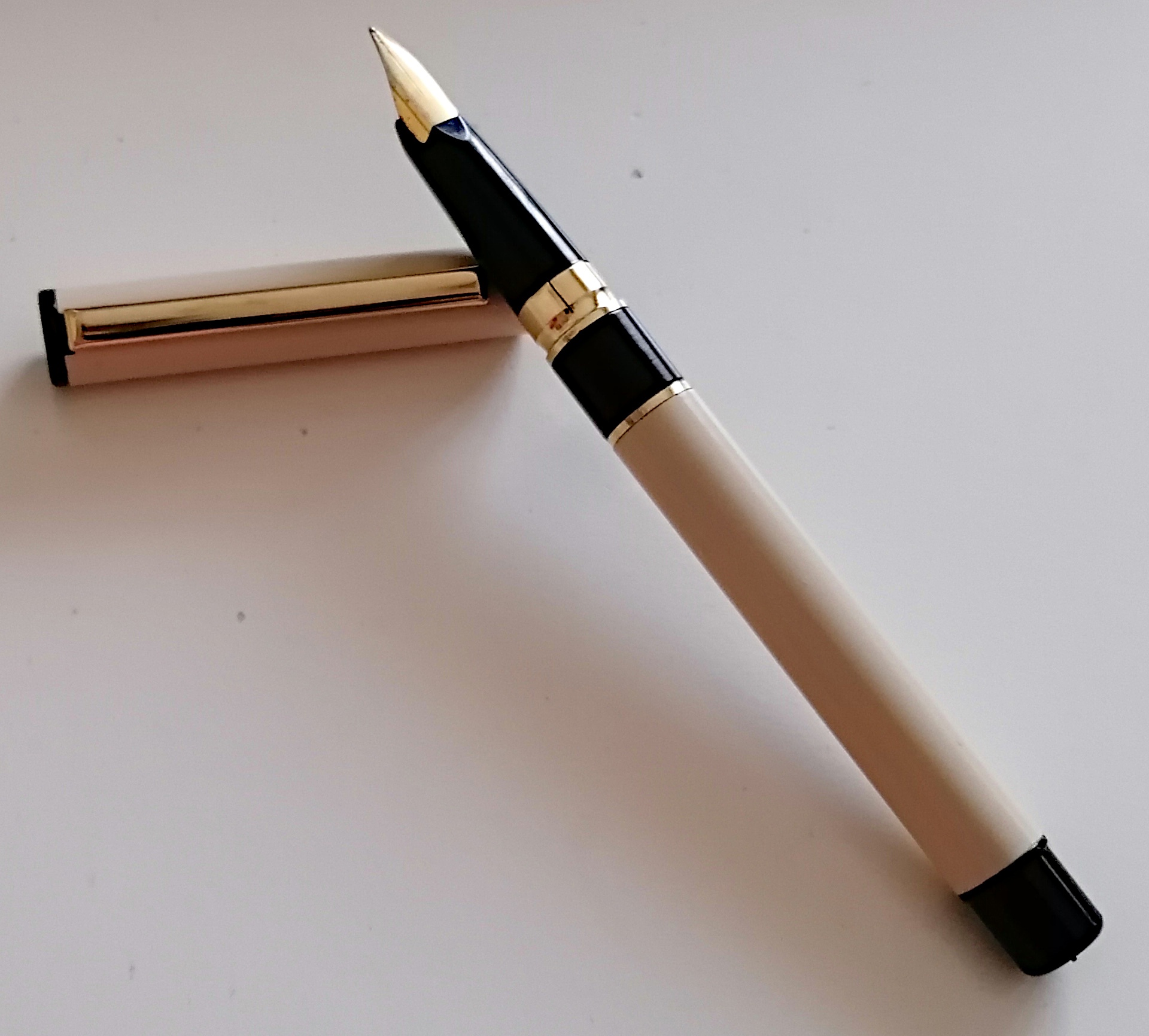 il pennino ricorda nella forma alcune Pelikan dell'epoca anni 70 (però non è marchiato in alcun modo), tutto il resto no, anzi la chiusura a scatto con avvallamento circolare subito dopo la sezione ricorda il sistema di chiusura di diverse penne di produzione cinese di anni fa.