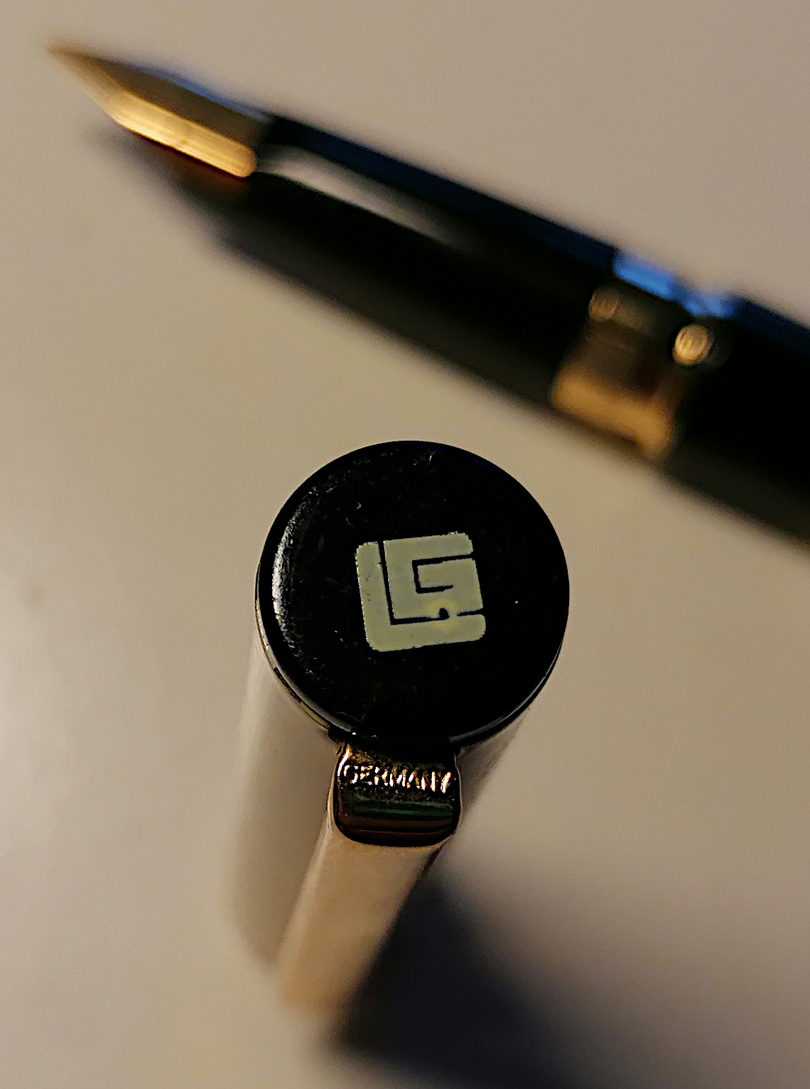 Sono di metallo, colore Ivory & Black, riportano una sigla LG sulla testa del cappuccio (sigla pubblicitaria?), finiture e pennino gold-coated, carica a cartuccia ed incisa sulla testa della clip la scritta "GERMANY" . Misura 13,2 cm, diametro 10 mm. Datazione incerta ma probabile degli Anni '60-'70.