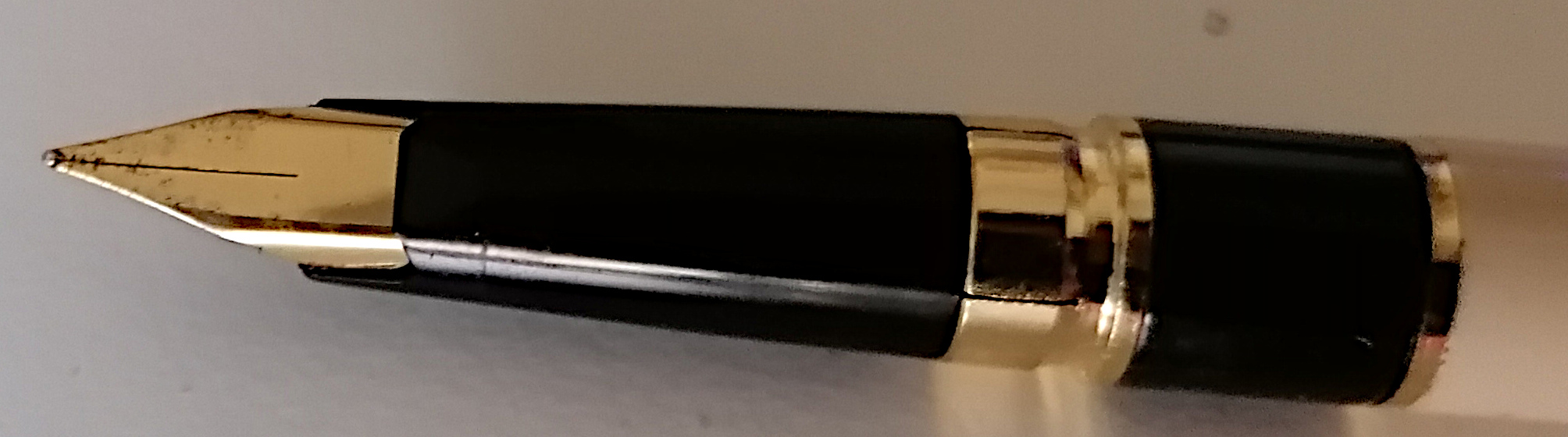 Pennino dorato privo del foro di sfiato, dovrebbe essere piuttosto rigido (ma non è assolutamente un difetto).
