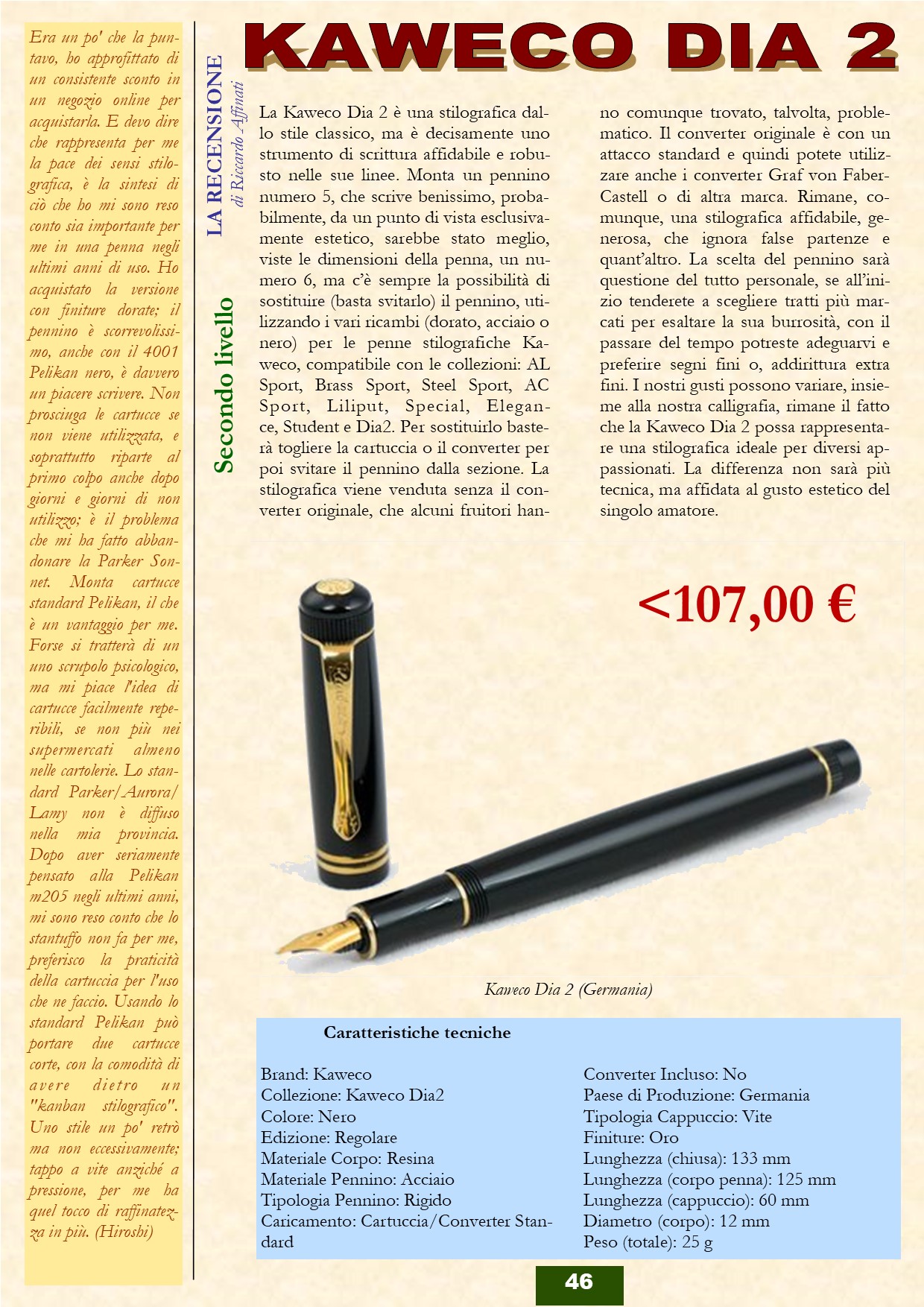 Come spesso aggiungo quando si parla della Dia II, ho come l'impressione che Kaweco non abbia pensato quando l'ha messa in commercio che anzichè usare il pennino Bock 060, avrvrebbe dovuto far nascere la penna con il Bock 076, che oltretutto è disponibile con la stessa filettatura.