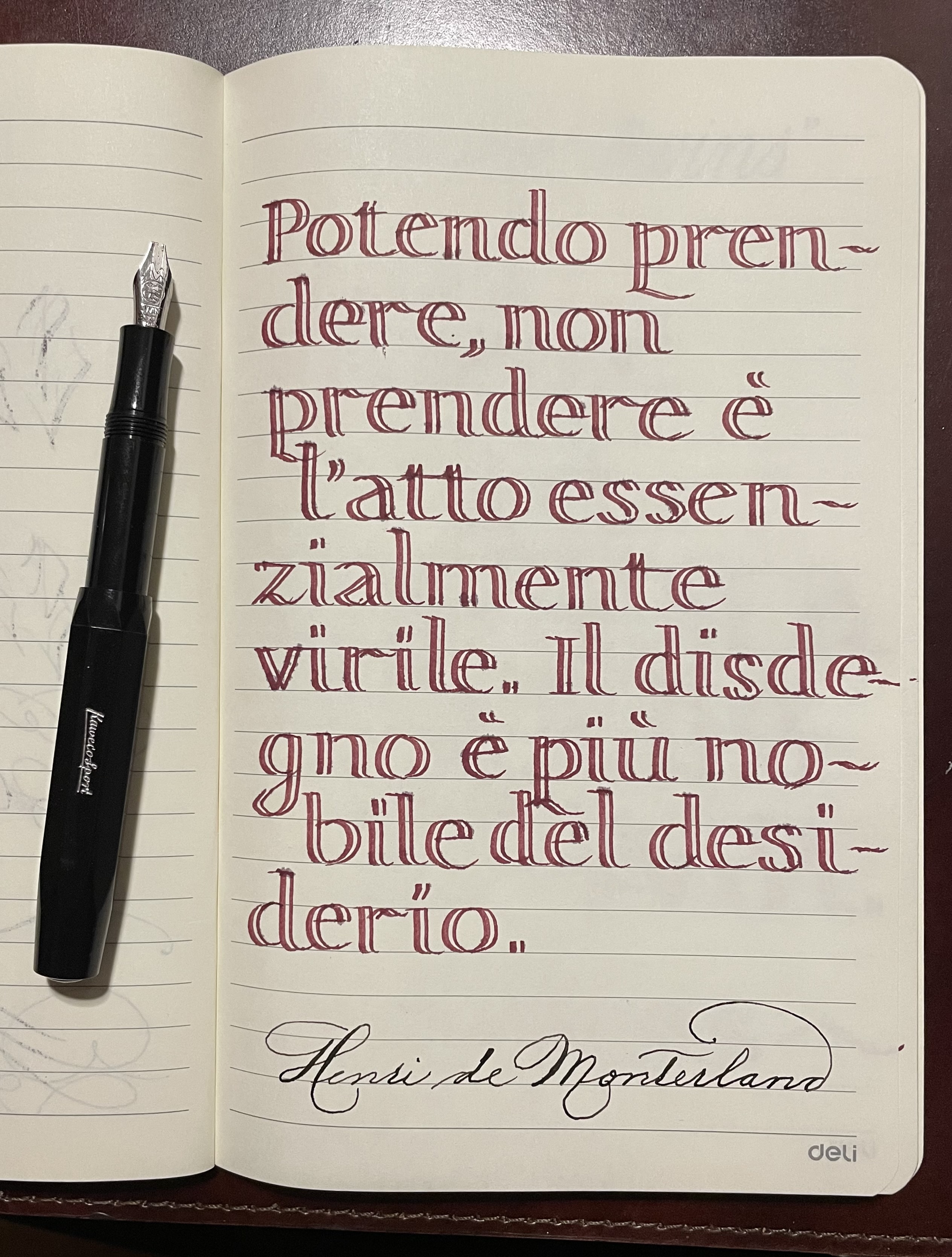 Lo trovo un pennino molto simpatico per divertirsi ed in callgrafia si ottengono scritture molto d'effetto.