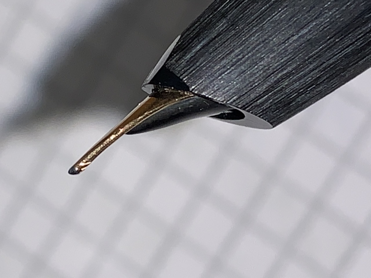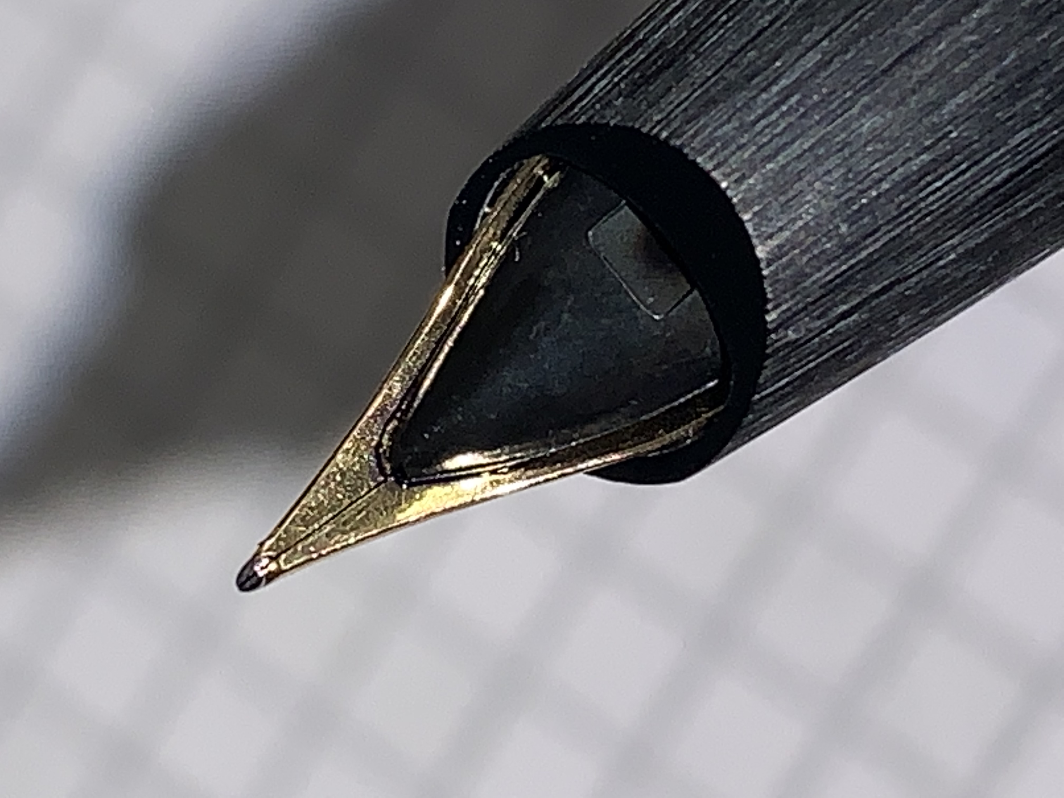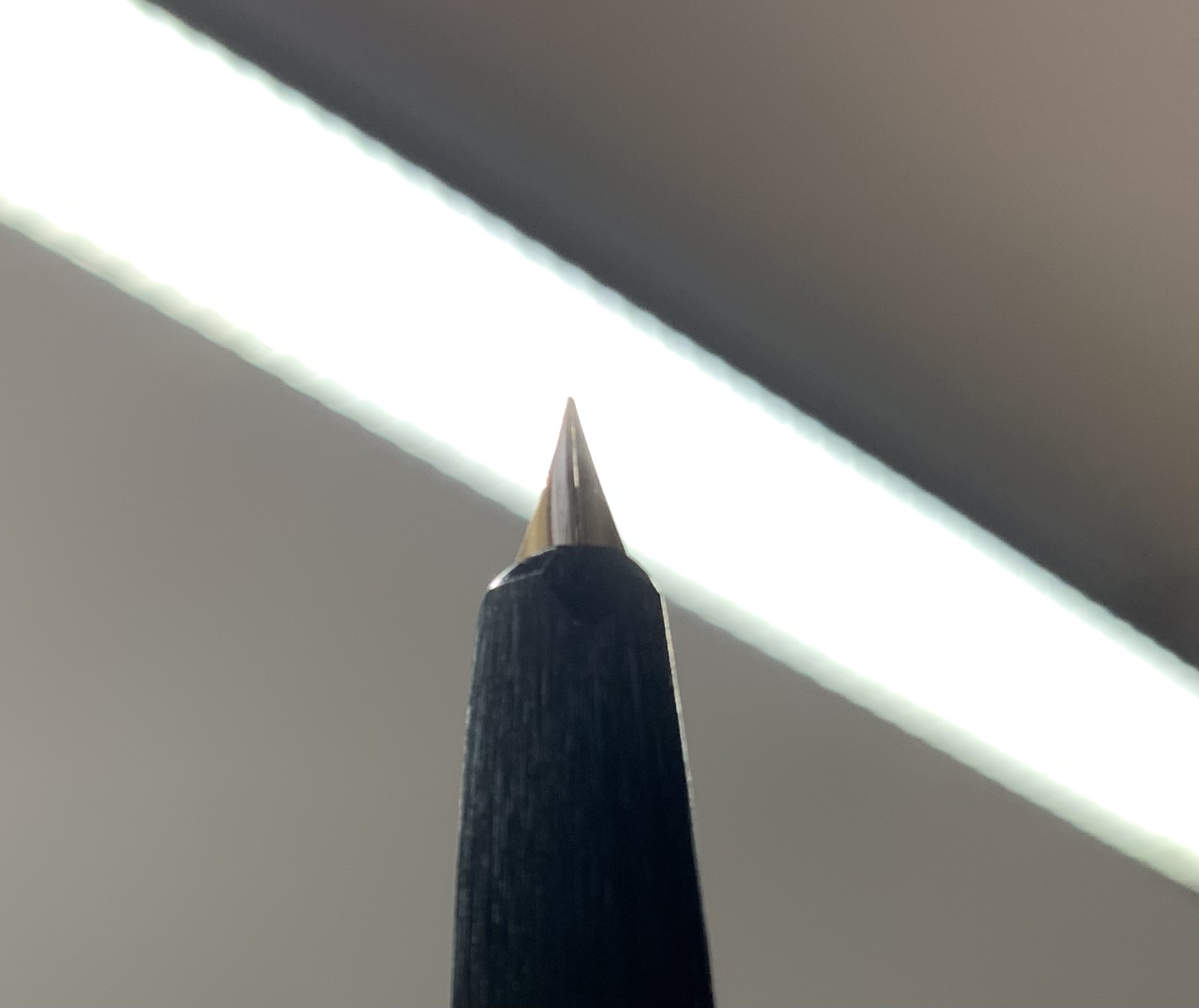 Faccio uno zoom. Il pennino dovrebbe essere un fine, sulla sezione nella parte inferiore infatti è incisa una “F”.
