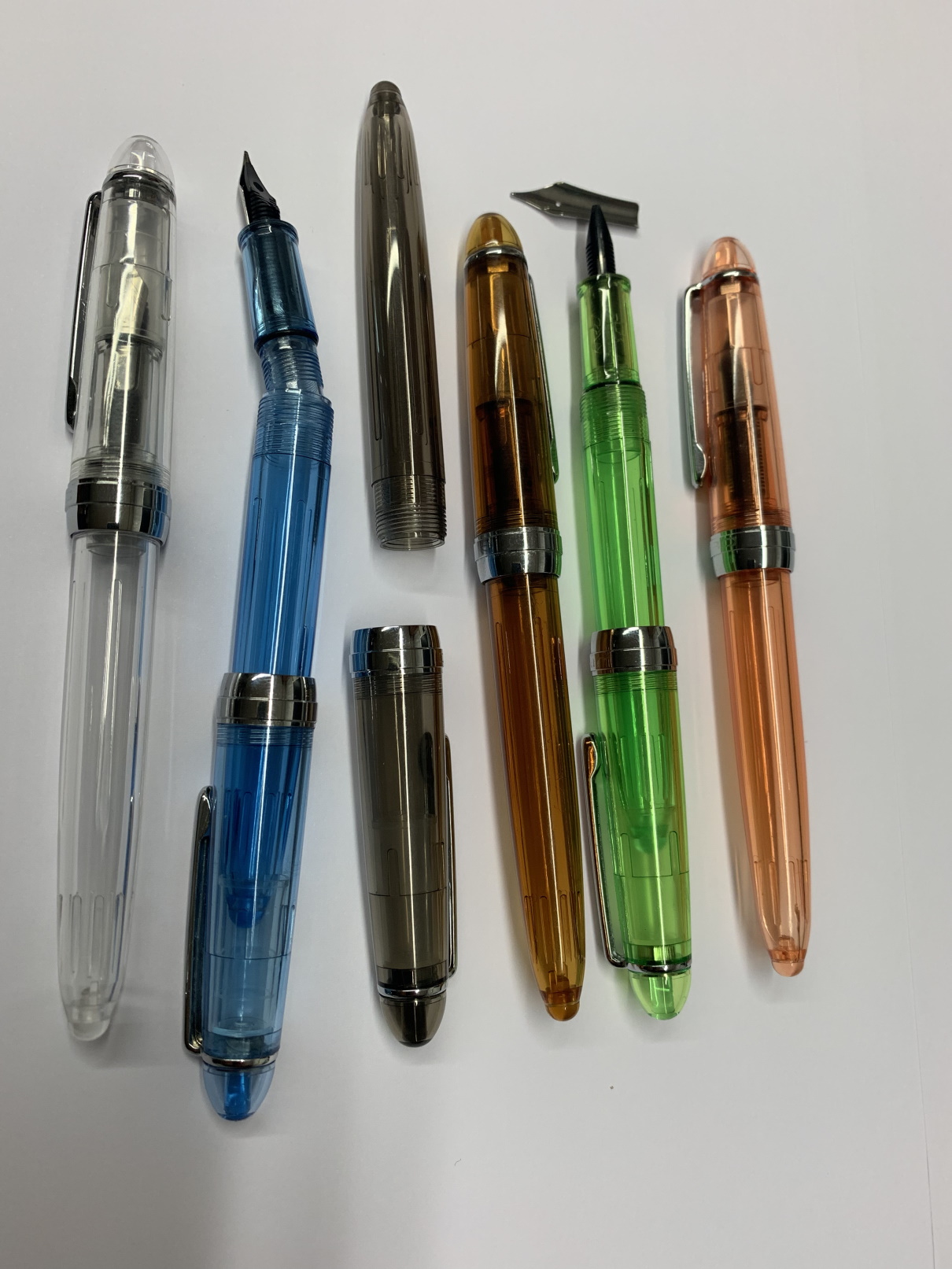 Penne asiatiche,ho acquistato dei cloni di Parker Vector e di Lamy,che fanno il loro lavoro degnamente,senza infamia e senza gloria e se cambi i pennini vanno bene. Ho avuto un colpo di fortuna? Poi mi sono accostato ai mercatini di strada dove trovi di tutto. Compero tutte le stilografiche che hanno, purché i pennini siano buoni,sono penne che stanno insieme a penne a sfera e pastelli,deduco che chi le usa le getta quando si scaricano e finiscono di usare le cartucce.Dopo accurati lavaggi le provo,scrivono bene ed alcune grandi come il sigaro avana, cloni di montblanc ,talentum ecc. con bei pennini dorati #6 scopro che se le adopero alla cieca non le distinguo dalle originali ....,..... sarà la vecchiaia che porta a vedere le cose un po' più rosee? Ai posteri l'ardua sentenza