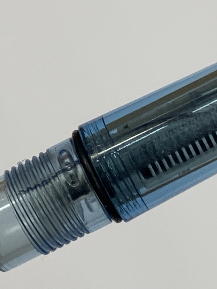 Ok, 1 penna M.I.A. già allo sbarco sulla spiaggia, vediamo la prossima, metto inchiostro, scrivo, scrive, due righe, tre righe, quatt... ma che ca... Ok, altra bestemmia e altro viaggio al lavandino... Sezione che perde da un po' di crepe nascoste sotto il collarino di metallo.