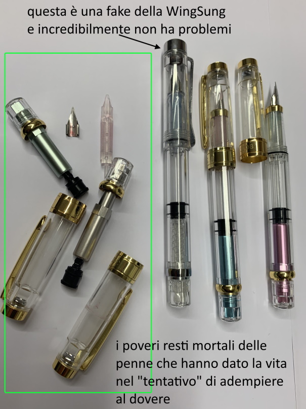 Ed ecco che il solito mefistofelico Alì mi propone per 12 modici euri 4 "cose" che vanno sotto il nome di... WingSung 3008. Recensioni ottime, e poi non sono quelle ciofeche di Jinhao!!! Ok, cedo e le compro.