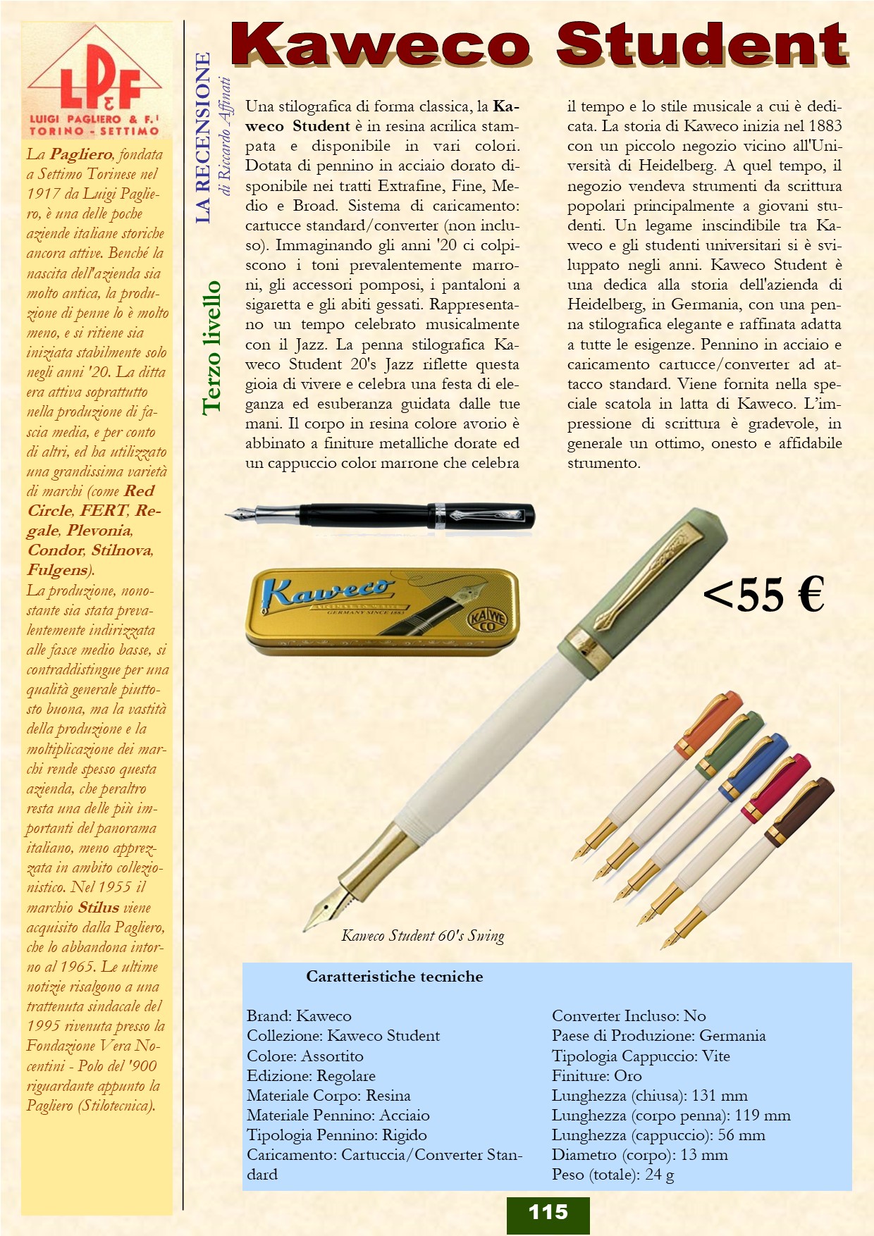 Una stilografica di forma classica, la Kaweco Student è in resina acrilica stampata e disponibile in vari colori.