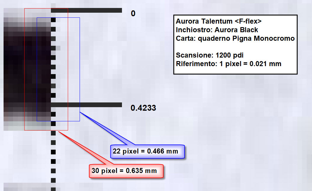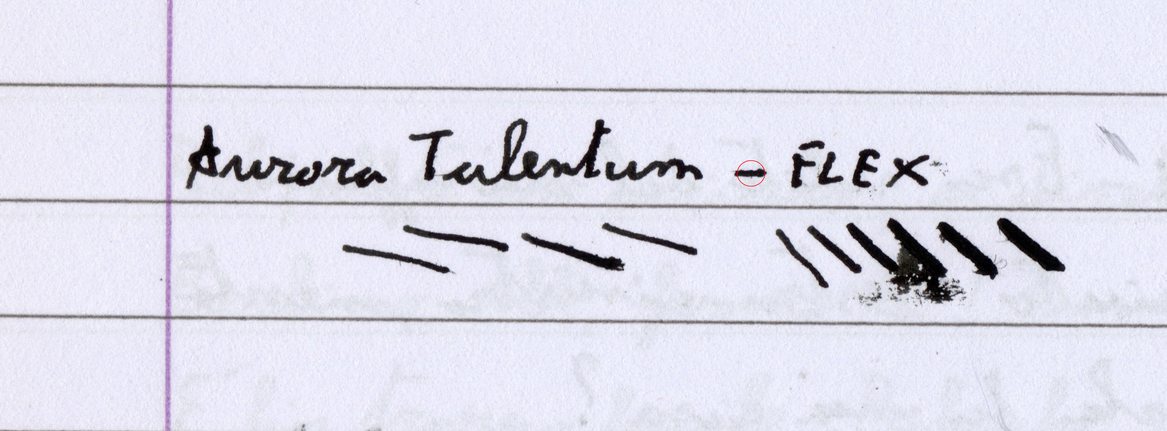 Coi pennini flessibili anche la quantità di pressione andrebbe indicata (difficile), col pennino flessibile della mia Aurora ho adottato una pressione minima, quella usata per la mia grafia normale.