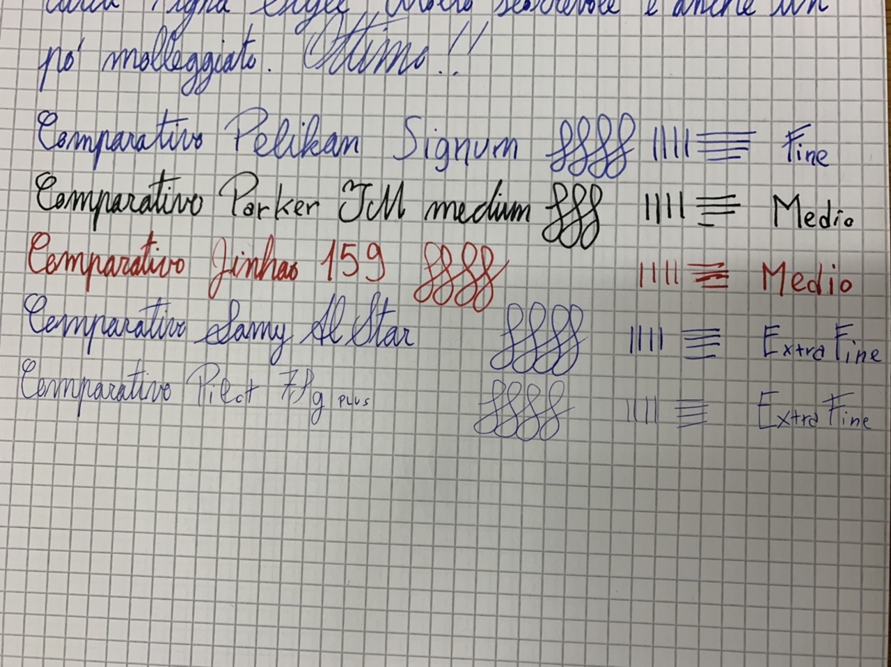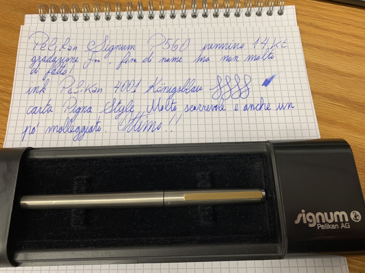 Scrive magnificamente, il pennino è un fine per modo di dire, in tipica tradizione Pelikan, ma scorre come la seta, non avevo mai provato un pennino così fantastico come delicatezza sulla carta!!!!