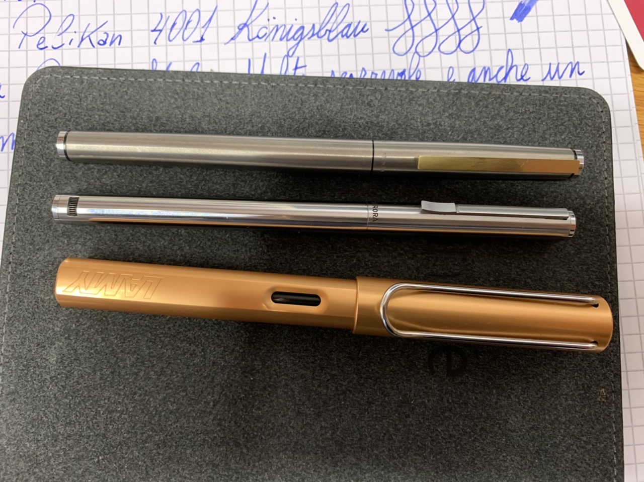 Non ho una grande esperienza in queste cose, è solo da un annetto che uso le stilografiche e ovviamente tutte a basso budget, quindi il meglio su cui ho messo le mani è una preppy 0,3 e la mia vecchia Aurora Style regalatemi per la laurea (che scrive benissimo), ma questa è stata uno shock! È come una vita passata a guidare utilitarie e poi ti compri una Mercedes Sl55 usata…. Un altro pianeta. La penna come si vede è “fortemente ispirata” all’Aurora Hastil, design minimalista e iconico, hai voglia a citare la bauhaus…