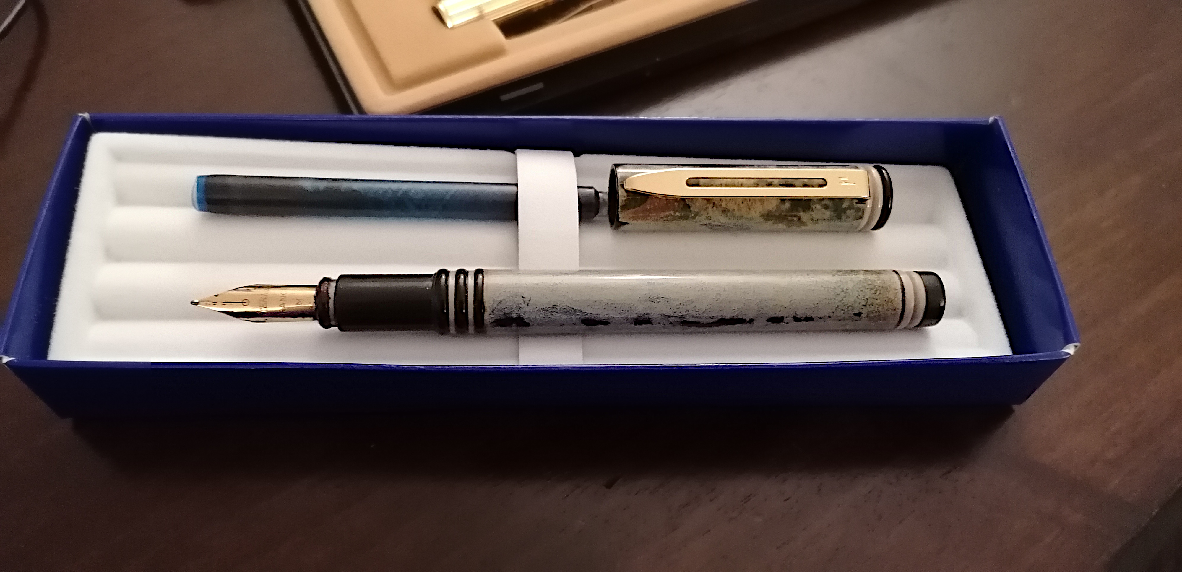 Non ho ancora trovato una sicura corrispondenza per la seconda Waterman, anche se mi sembra una "Waterman Forum" con una particolare livrea.