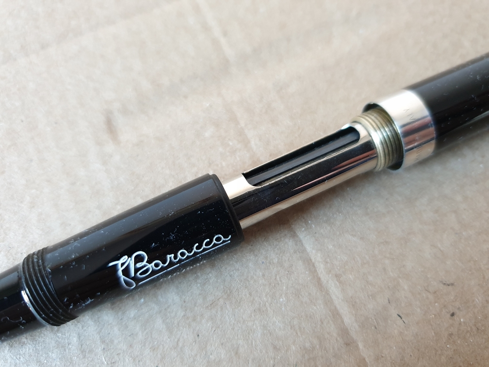 Ho immaginato anche questa soluzione ma la struttura metallica è piuttosto rigida, così come anche il gommino, non risponde come, tanto per fare un esempio, l'aerometric filler della Parker 51.rolex hunter ha scritto: ↑domenica 5 dicembre 2021, 17:28 OK, nella pubblicità all'uscita della "Baracca" si parlava di un caricamento "sleeve filler"... Quindi, una volta svitato il fondello ed esposto il sistema di caricamento... ritengo tu debba comprimere (più volte, direi, ma prova con 1 volta e guarda se aspira abbastanza inchiostro) la vescica del converter (quella cosa nera che si vede nella foto 2 e 3 all'interno).