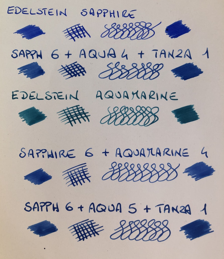 a confronto il risultato finale con Diamine Sapphire e Iroshizuku Asa Gao
