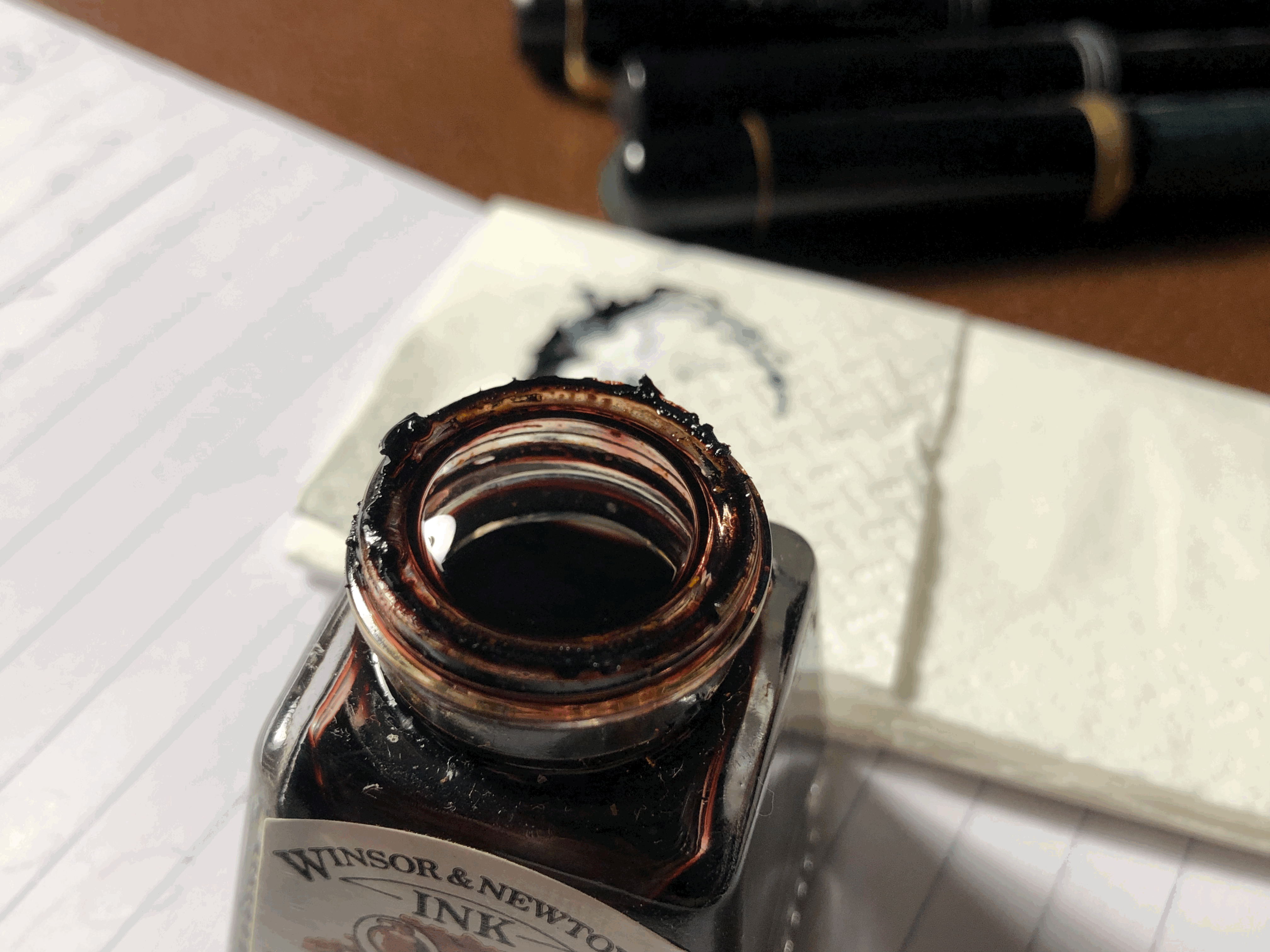 In passato, approfittando di una lunga chiacchierata tecnica con uno dei boss di W&N, in vista di una possibile collaborazione con la casa, feci presente che l'indicare "for fountain pen" (presente indistintamente su tutti i 18 colori della gamma) era un qualcosa da verificare a fondo, per evitare problemi futuri.