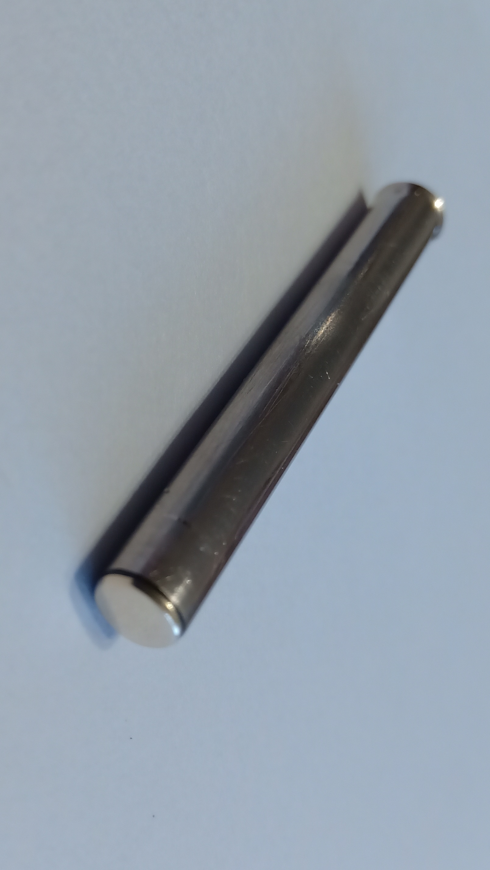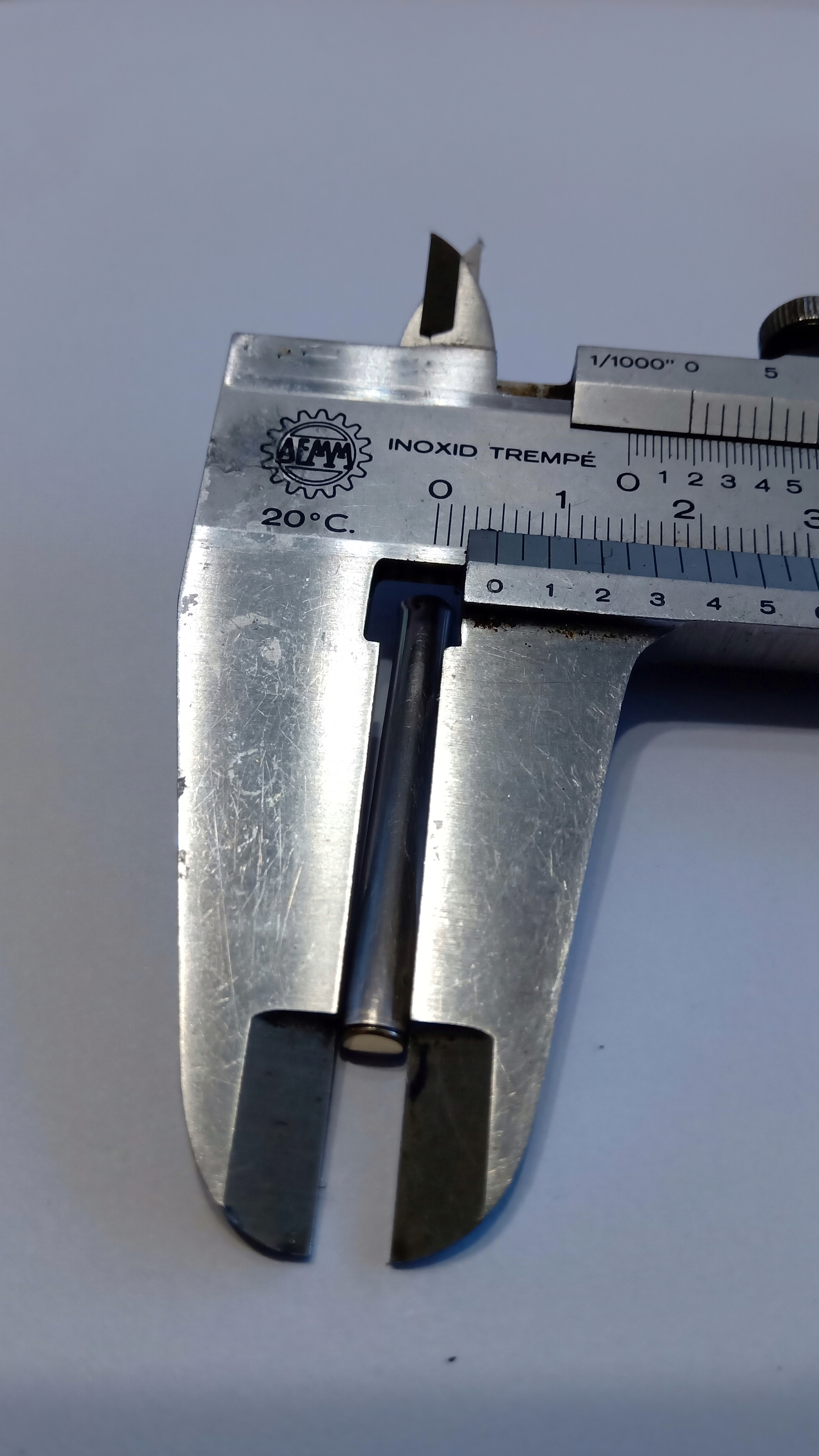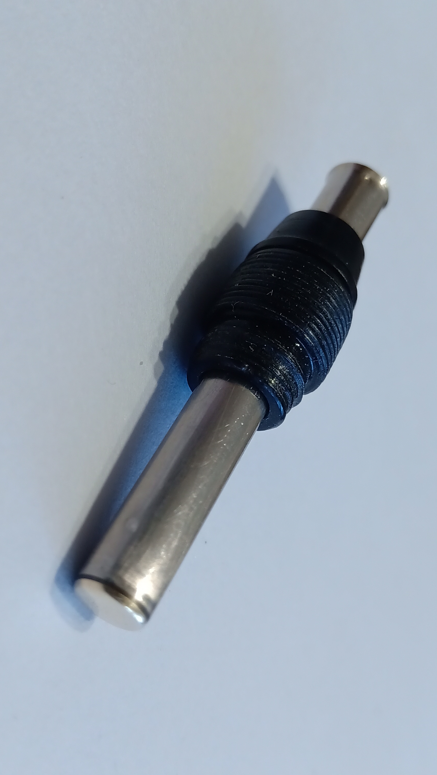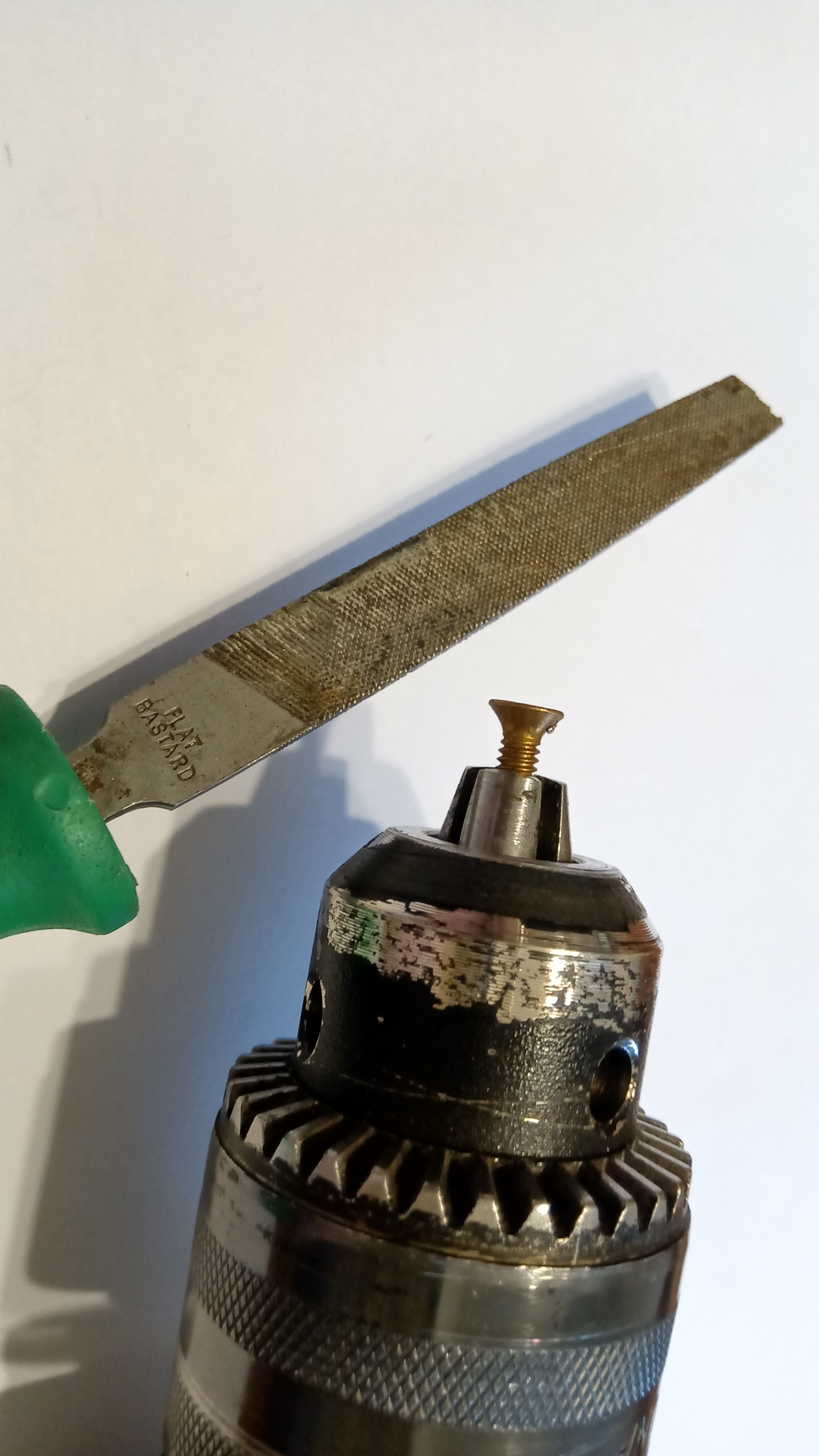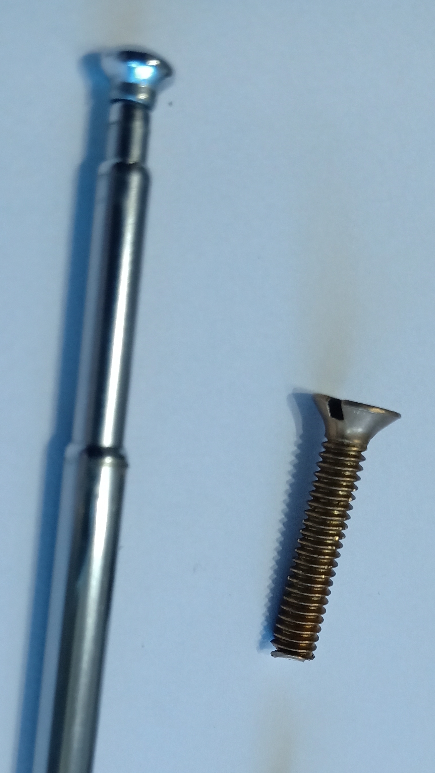 I then managed to extract material from an extensible mini antenna, which I cut to the size of the original button, using a bronze screw for the end of it, which I then worked with a file and a drill, to bring it to the diameter and shape of the stem.