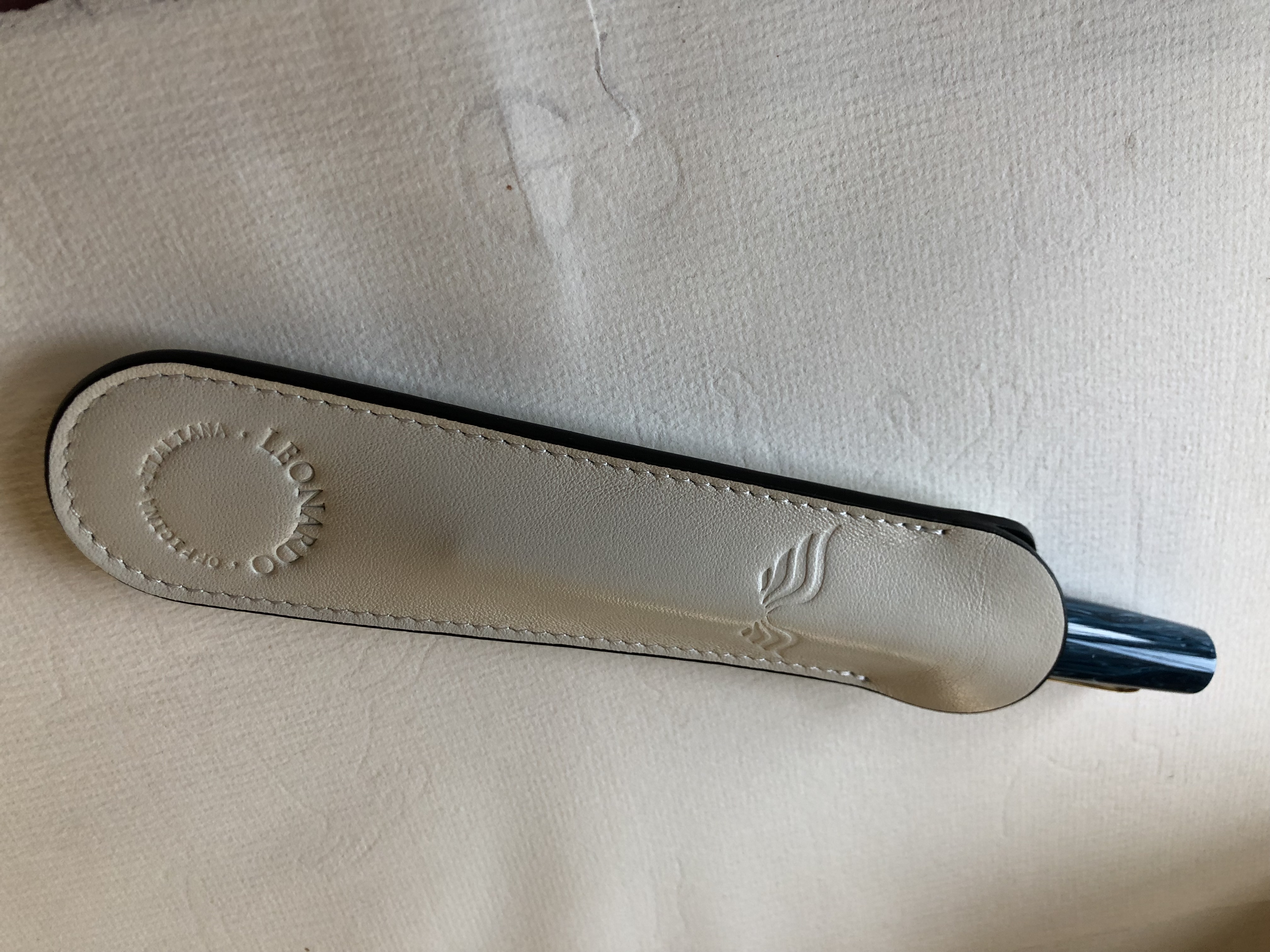 Ebbene, nel giro di un paio di ore la Sig. Mariafrancesca mi ha ringraziato per la critica costruttiva, ha ammesso la difformita' di colorazione e la "svista" da parte loro e mi ha spedito via DHL un fondello con colorazione perfettamente in tono al resto della penna aggiungendo un piccolo omaggio (portapenna in pelle col loro marchio).