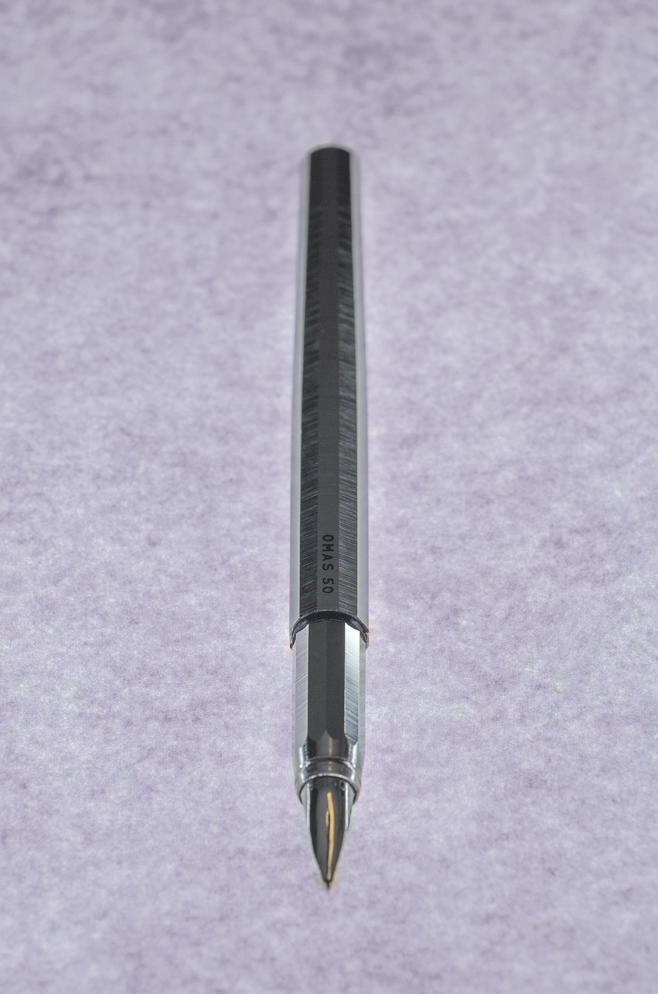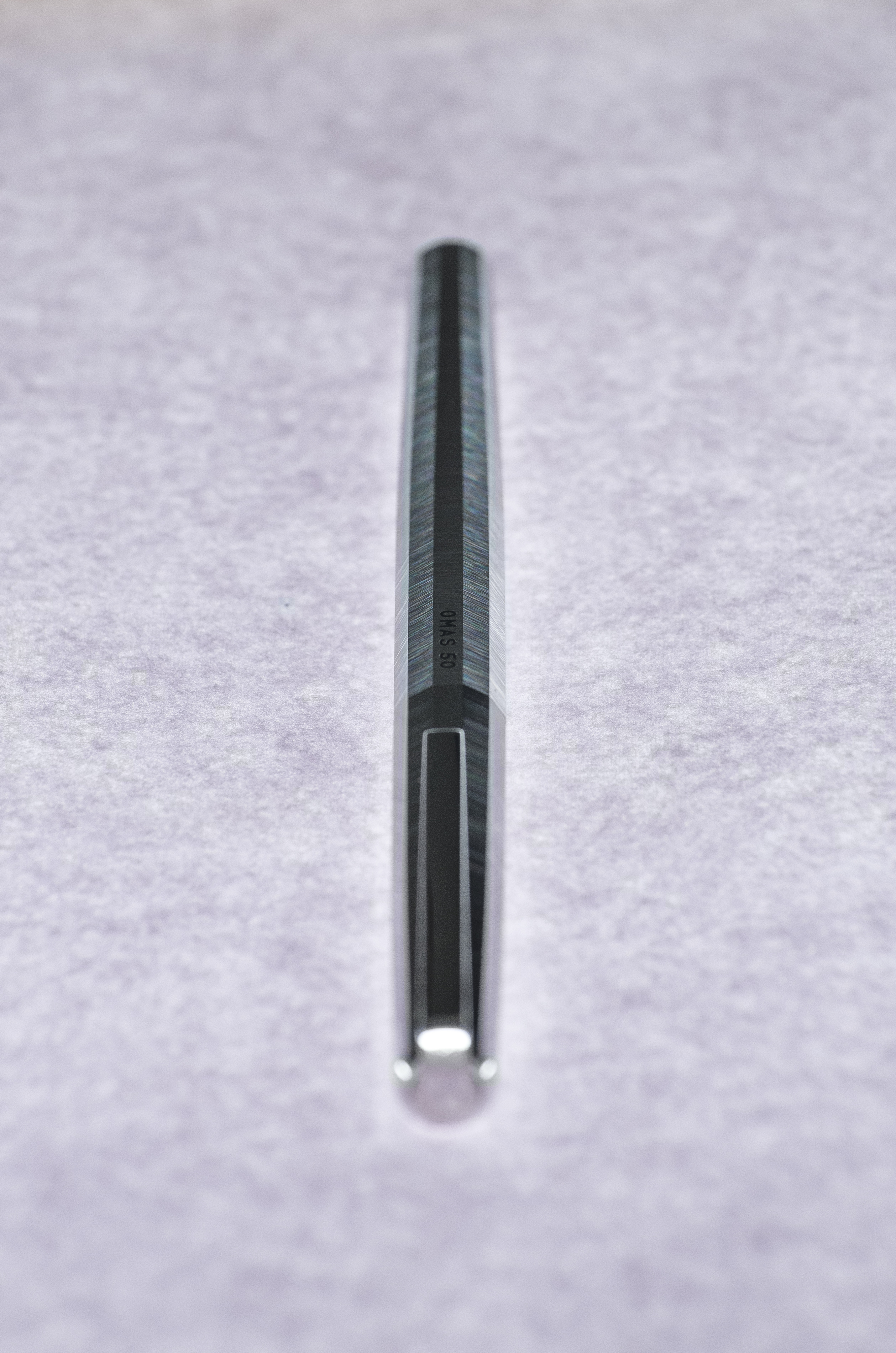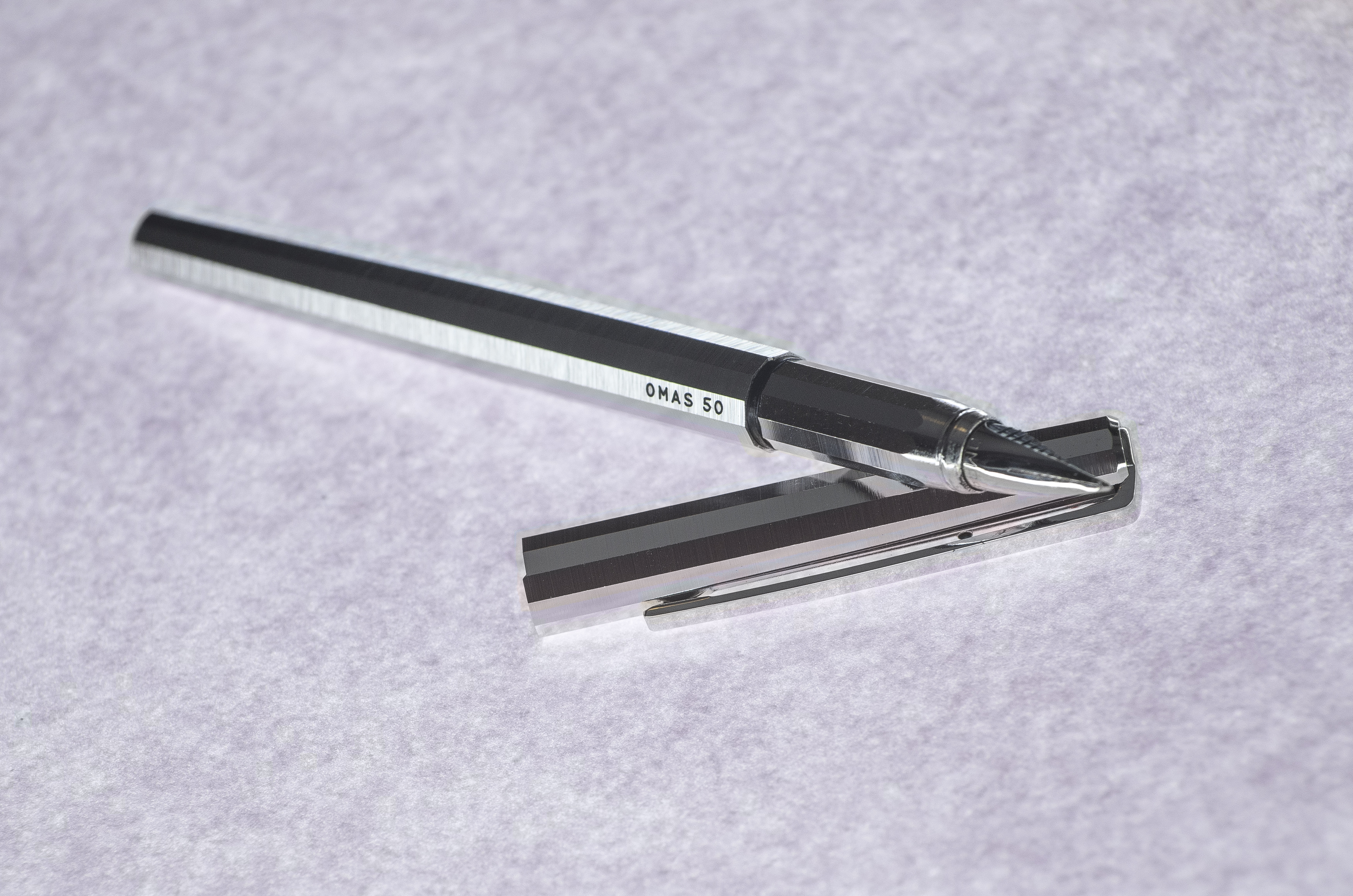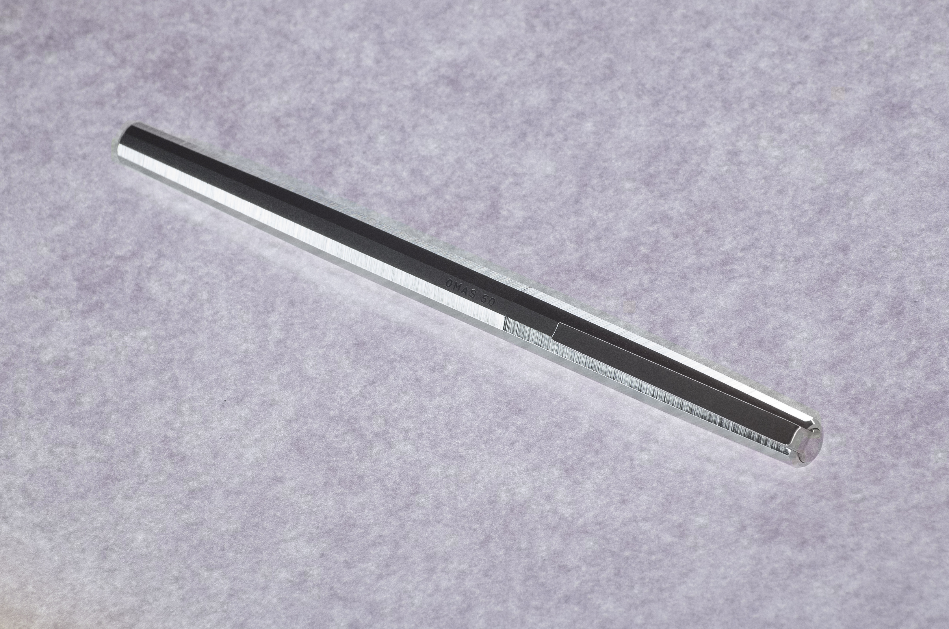 Non mi ricordo dove ma ho letto che la penna, tutta in acciaio inox, venne realizzata per forgiatura. Quando si innesta il cappuccio un automatismo fa allineare le facce con quelle del fusto e l'aspetto estetico non è compromesso. Il tempo di trovarla negli scatoloni e vi dirò quanto pesa, come scrive e come sta in mano.
