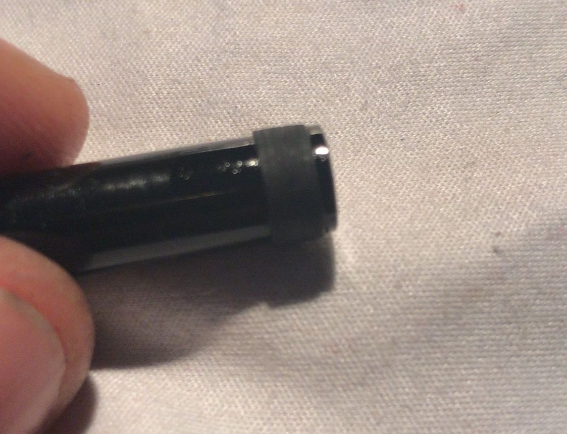 Prima del ripristino oggetto di questo articolo, la penna in questione presentava uno spazio minimo, ma visibile, tra fusto e fondello, non bello a vedersi (fig. 1). Per ovviare a questo problema operate come segue.