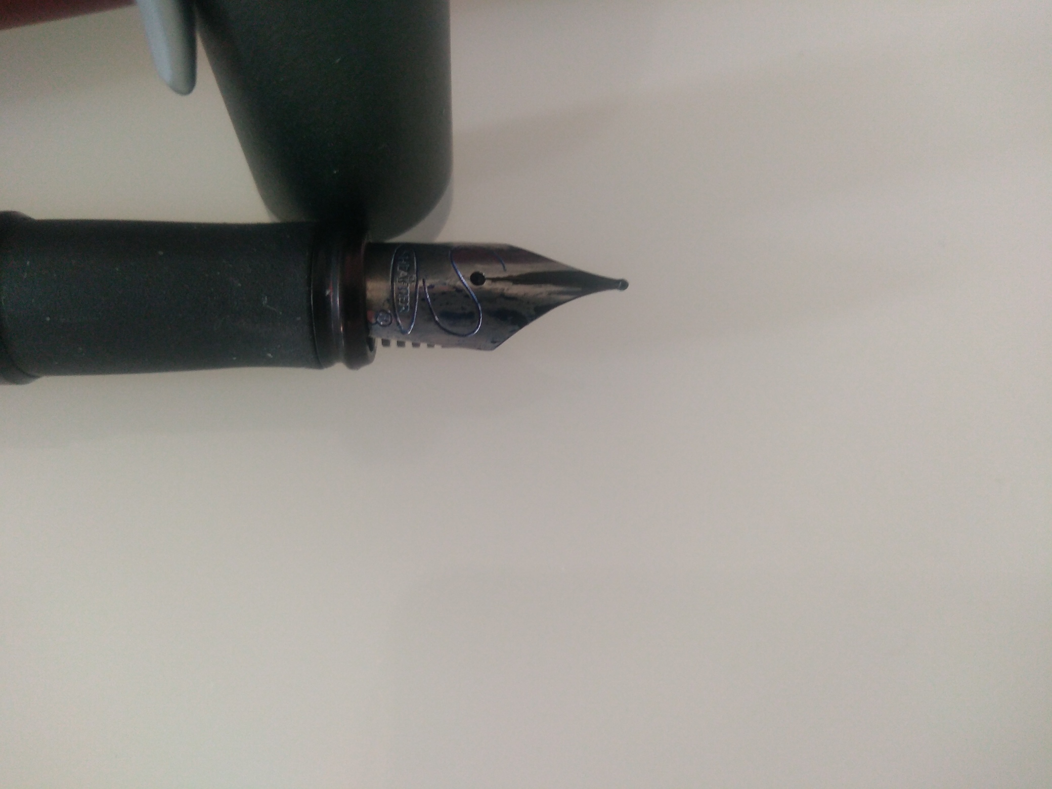 La penna monta un pennino "M", ma mi pare scriva più sottile quasi "M/F", a differenza dei modelli più recenti sul pennino manca l'indicazione dello spessore del tratto che invece é riportata in piccolo sul bordo di plastica del gruppo scrittura. La penna è ben tenuta, fornita della sua scatola originale con librettino di istruzioni, attualmente la sto usando con la cartuccia Sheaffer in dotazione, che è più lunga delle standard Pelikan e anche più grossa.
