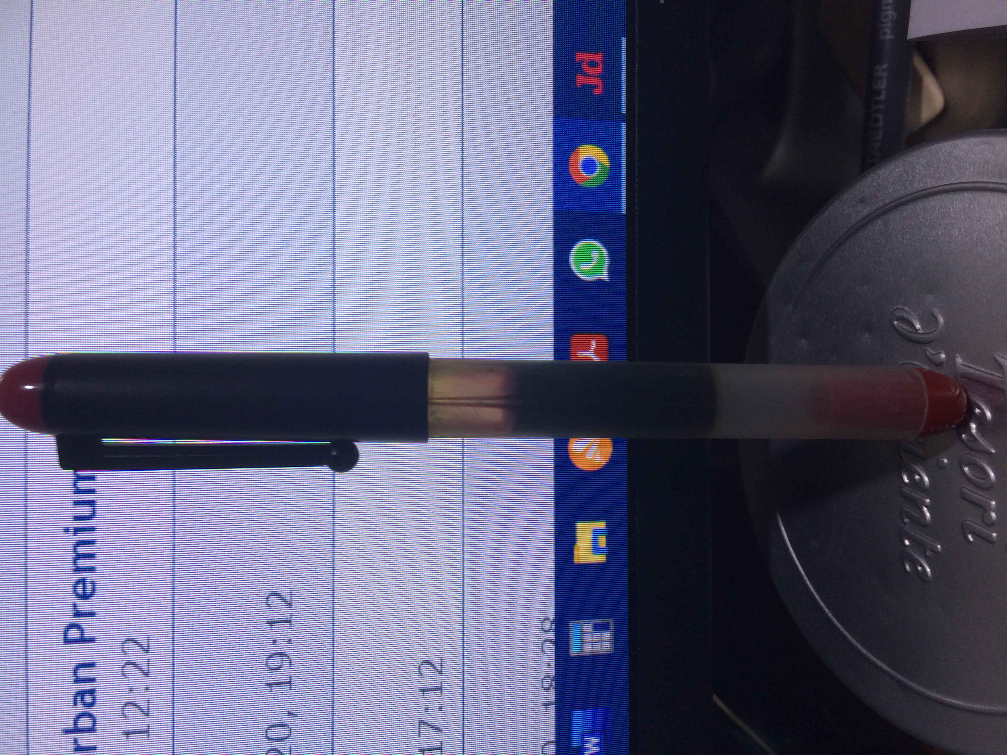 Circa 5anni fa ho redatto una recensione su una Pilot Varsity incensando la possibilità di ricaricarla. Ho tenuto fede a questo impegno ma la superfice del fusto ha perso la copertura colorata. È allora con goffagine unica e usando prima la limetta delle unghie (che non dovevo usare) e poi la pasta iosso (per la prima volta) ho eliminato il colore dal fusto. Sul cappuccio non era possibile perché è proprio il colore della plastica.