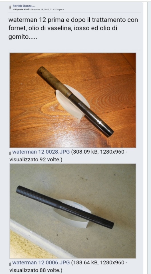 Grazie, questa della soda caustica per l'ebanite non la conoscevo. Mi rimane sempre la curiosità del bicarbonato di sodio, forse meno aggressivo.Ottorino ha scritto: ↑venerdì 13 maggio 2022, 17:41 https://www.fountainpen.it/Pulizia_dell ... a_caustica