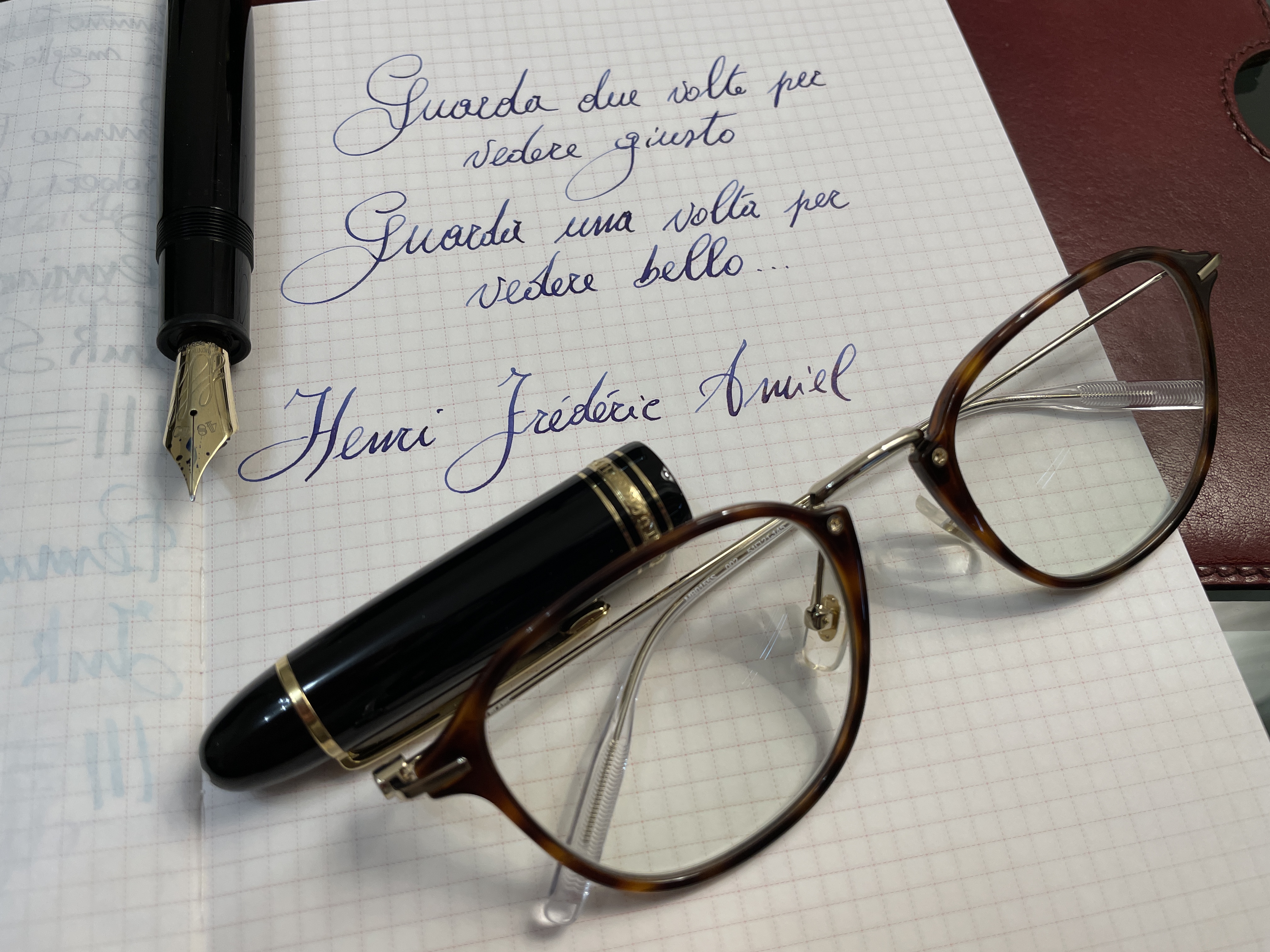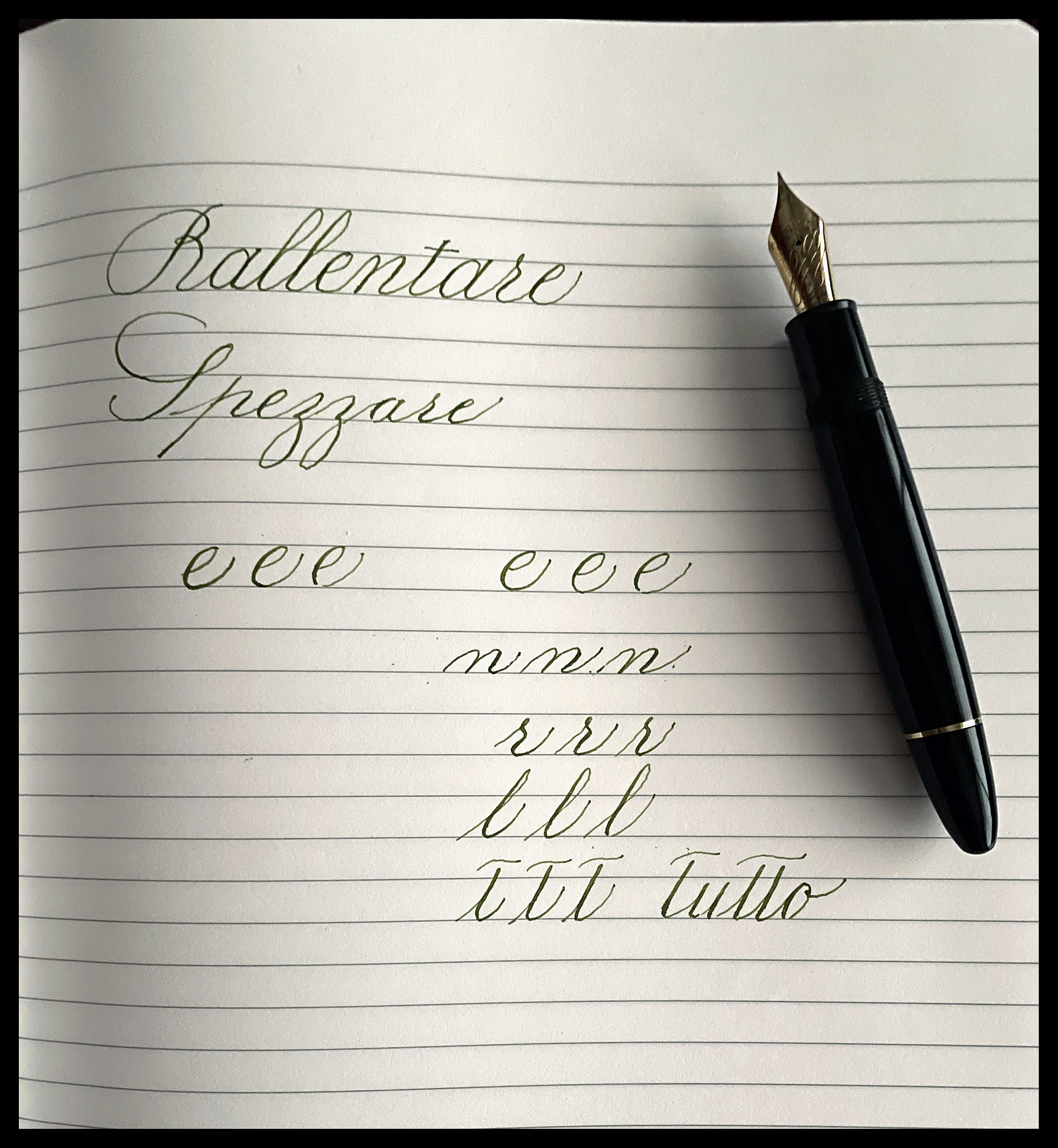 Wow. Non impazzisco per gli inchiostri Rossi, ma questo soprattutto quando si flette è magico. Forse è l’inchiostro migliore che ho provato con la 149. Shading molto marcato e ha la consistenza giusta per lavorare con il pennino, nel senso che non allarga i tratti fini e lavora bene a rebbi larghi.