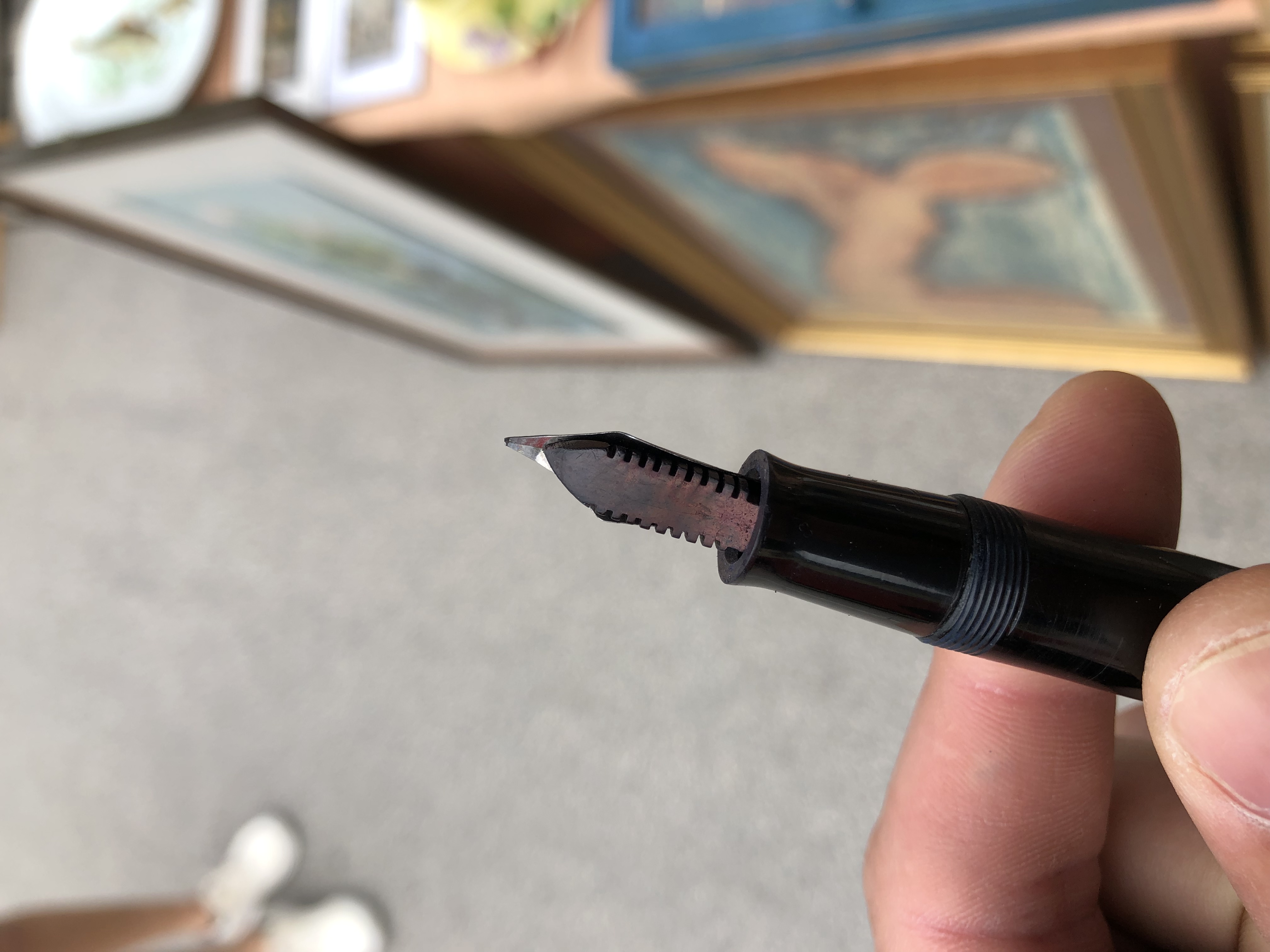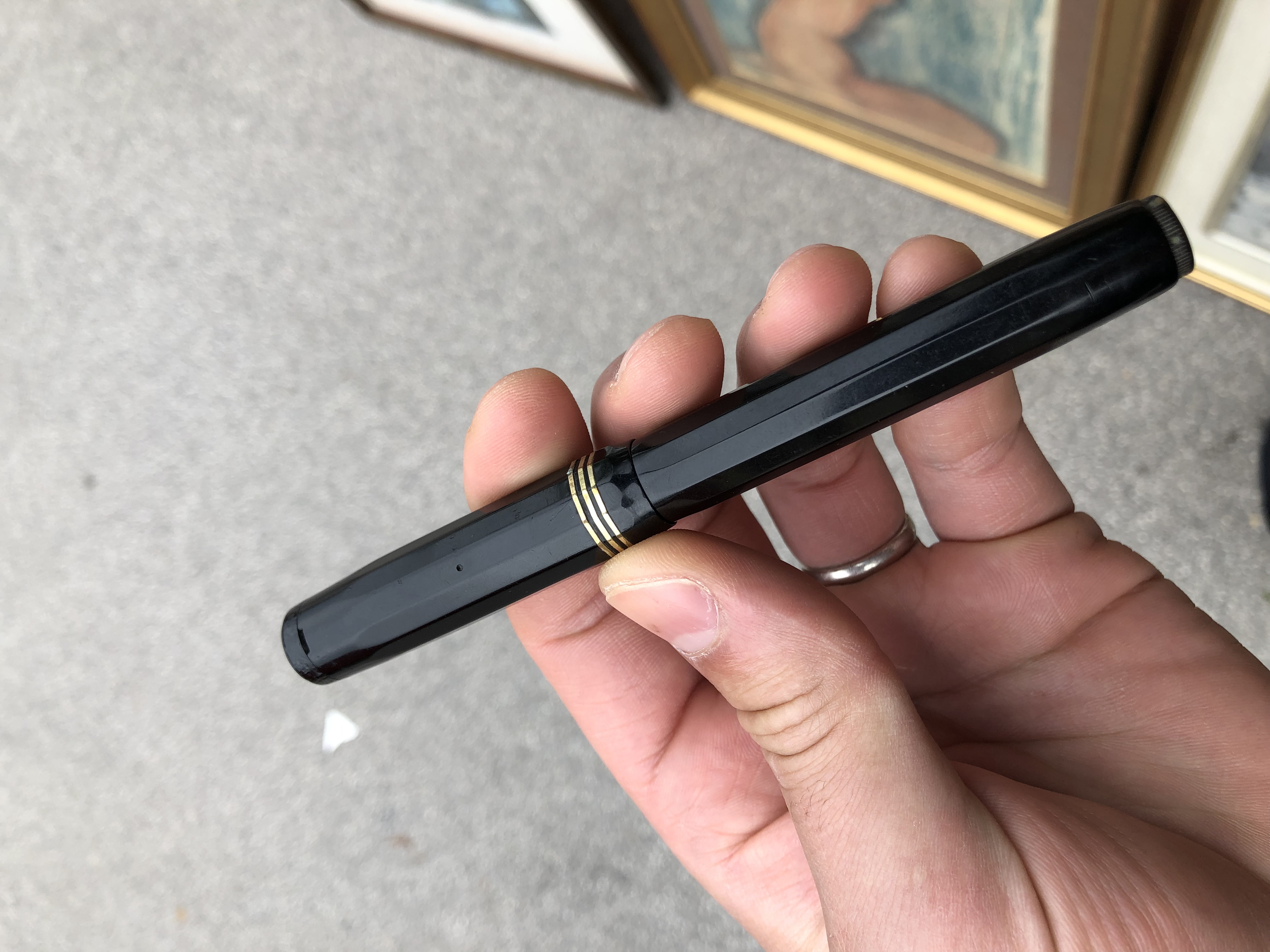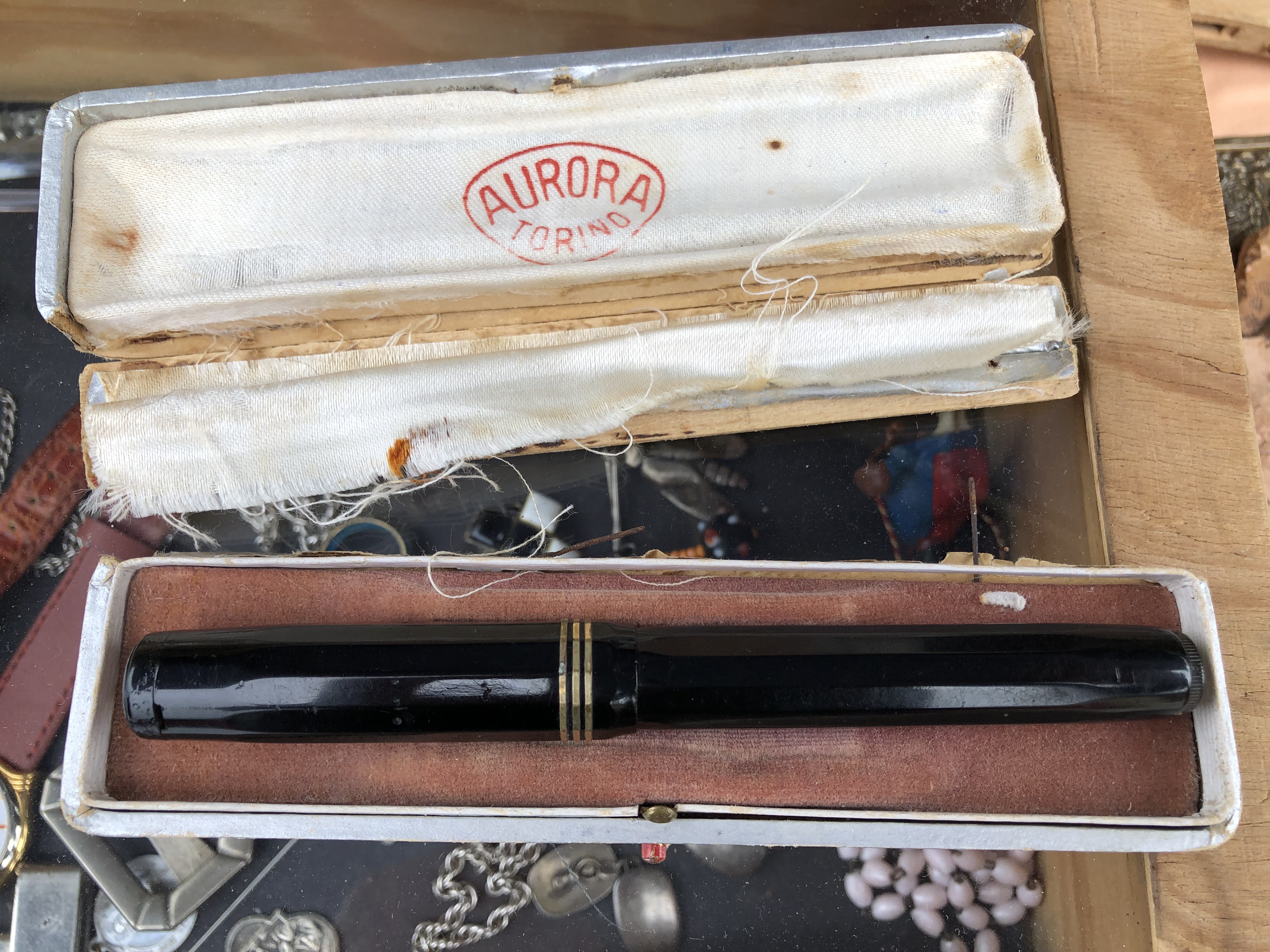 Ho incontrato a un mercatino una Aurora Novum, manca di clip, pennino sostituito con un acciaio generico, sfaccettata nera e misura, penso, grande, infatti non riuscivo a impugnarla col cappuccio calzato…