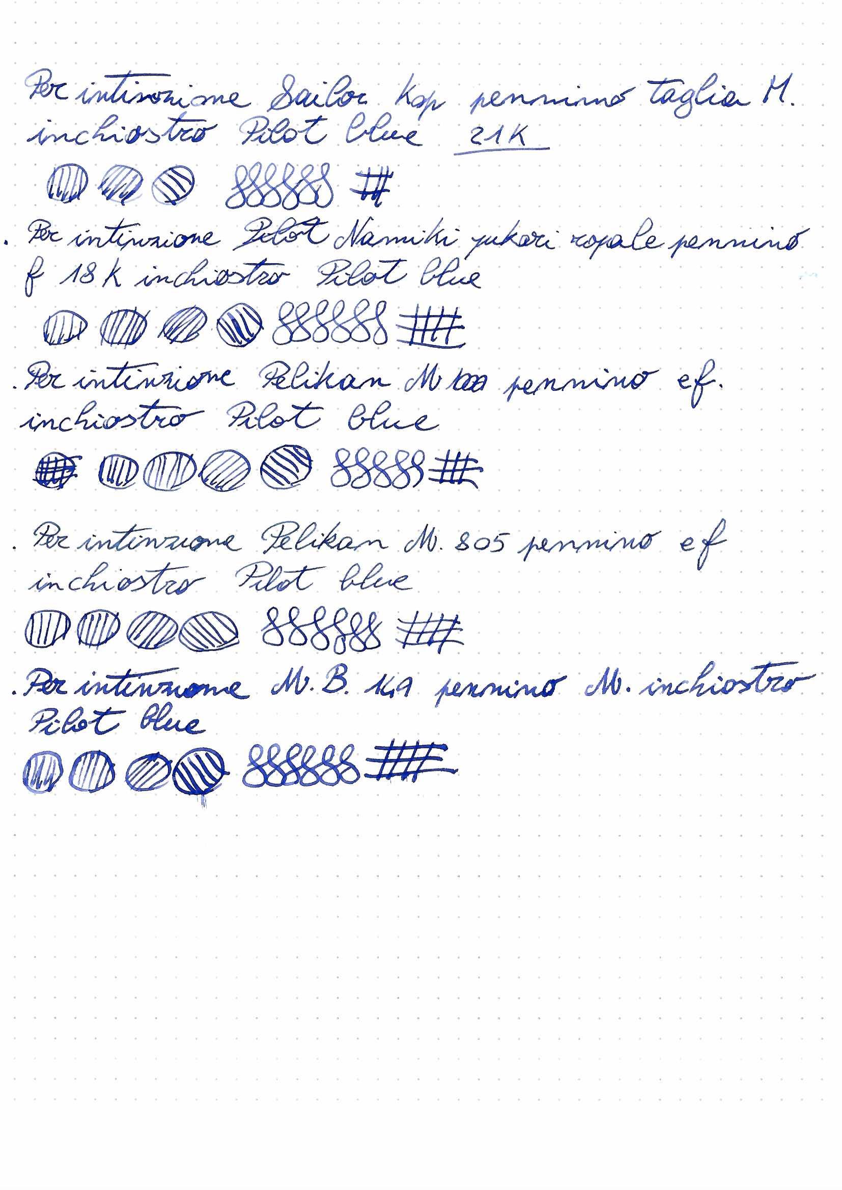 !! Ti allego qualche foto mi spiace siano fatte con un cellulare per cui non risultano di grande qualità. Il pennino della Yukari è un 20 quello della Pilot Urushi è 30...enorme! Ritengo che per criticare o recensire uno qualunque di quei pennini dovrò ancora consumare moltissimi blocchi di Rhodia. La mia opinione per quel che vale è tra i 2 pennini giap che hanno un flusso perfetto rispetto ad una Realo lo definirei abbondante ma molto meno rispetto alla M1000 EF e naturalmente ancora di più rispetto alla 149 M. Sono entrambe rigidi non si ottengono variazioni di tratto ma riescono a dare una sensazione di morbidezza soprattutto quello Pilot. Entrambe sono scorrevolissimi ma non scivolano sulla carta, nessuna interruzione ne diminuzione del flusso anche scrivendo più velocemente. Li trovo entrambe di grandissima qualità e devo aggiungere che, anche se non serve a migliorare la scrittura, maneggiare le due giap in lacca Urusci è una bella emozione. L'unica pecca, sempre mia opinione, è che entrambe siano alimentate con converter ma...così richiedono la praticita ed i lmercato.   Luca