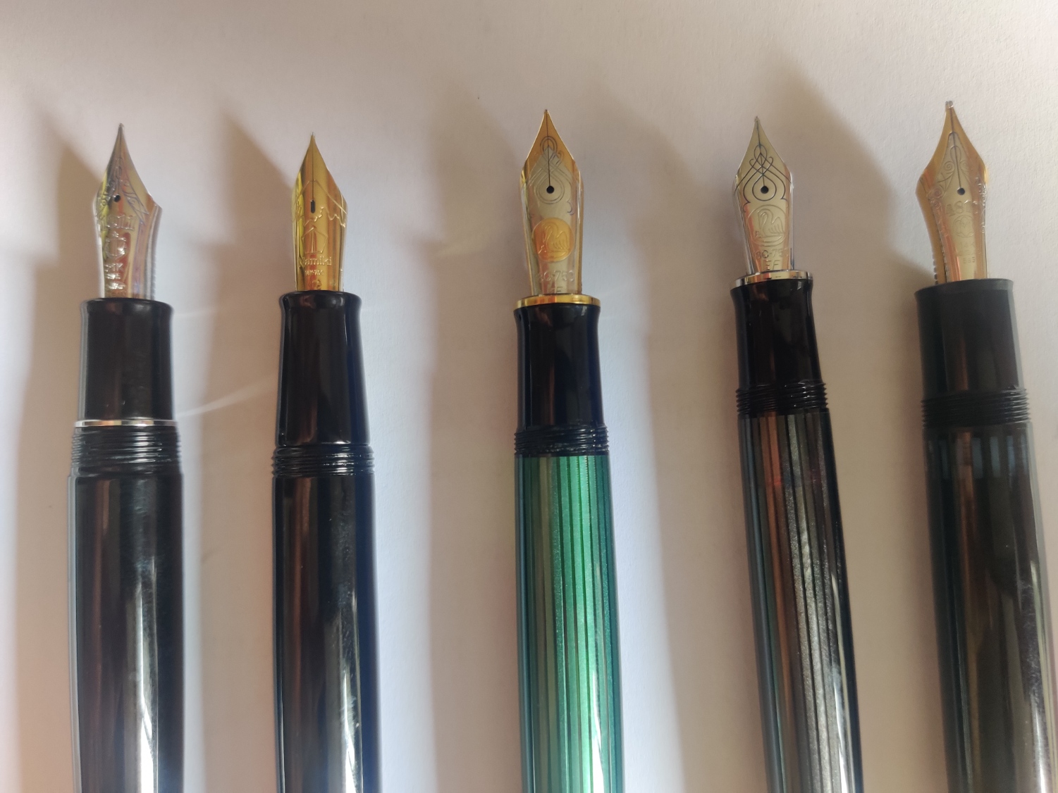 Nella foto da sn: Sailor Kop, Namiki Yukari, Pelikan M1000 Pelikan 805 e Mb 149. Luca