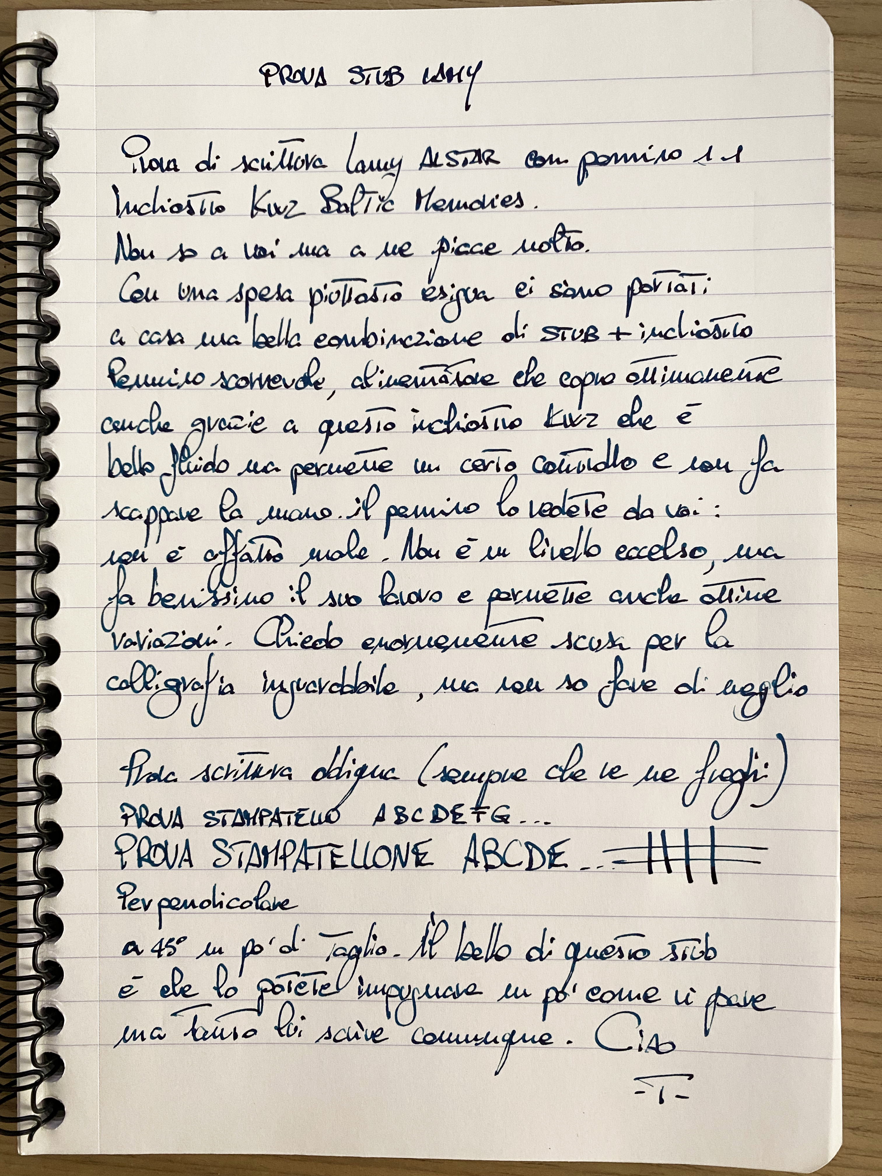 E.. si, preferisco anche io lo stub 1.1 di TWSBI anche se il Lamy non era malissimo. Preferenze! :)