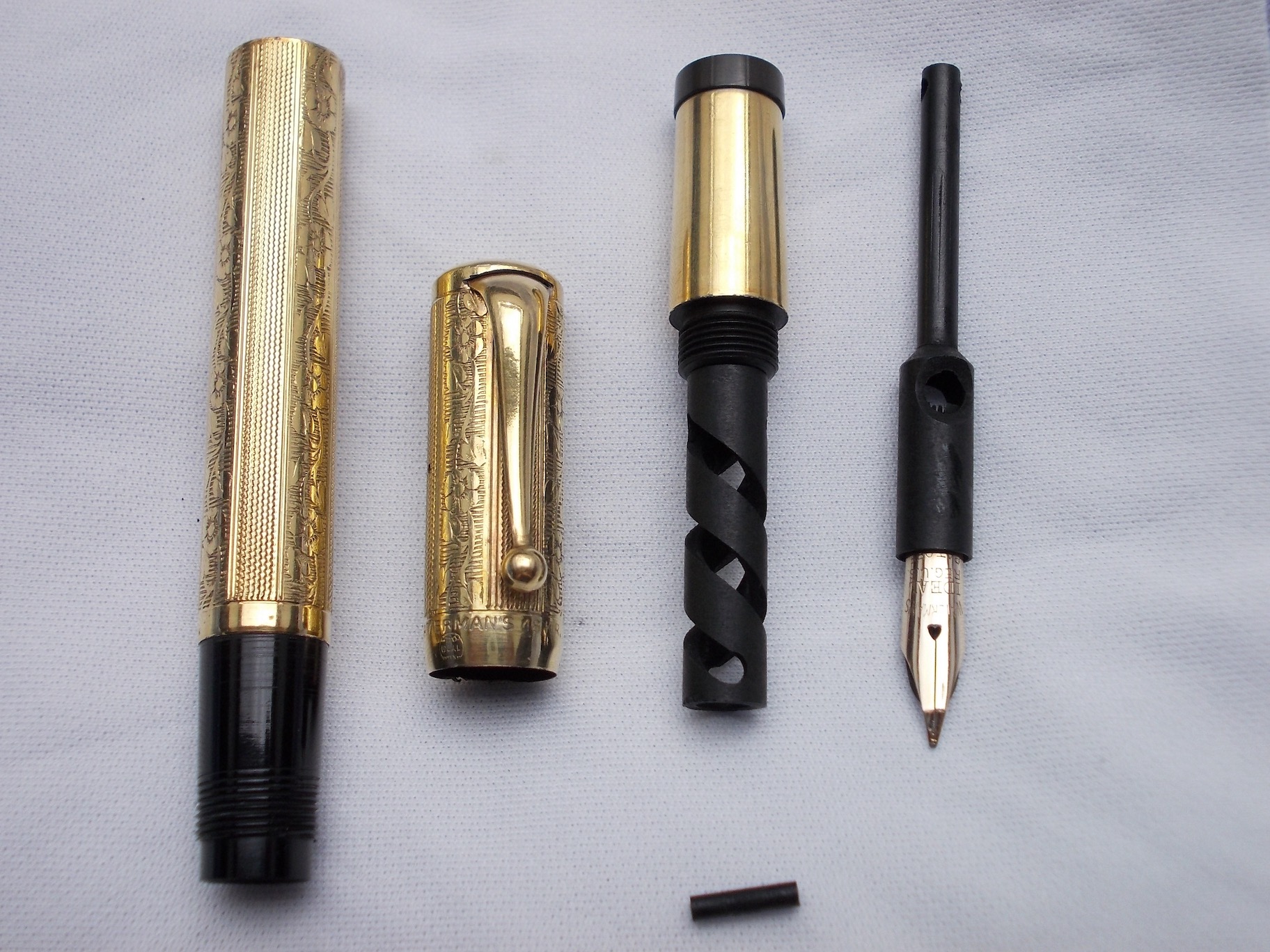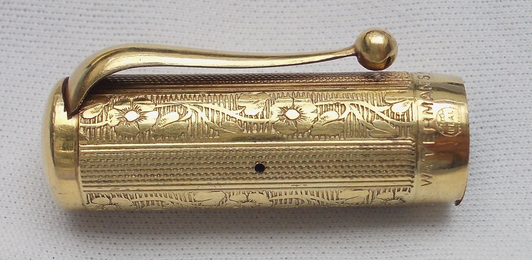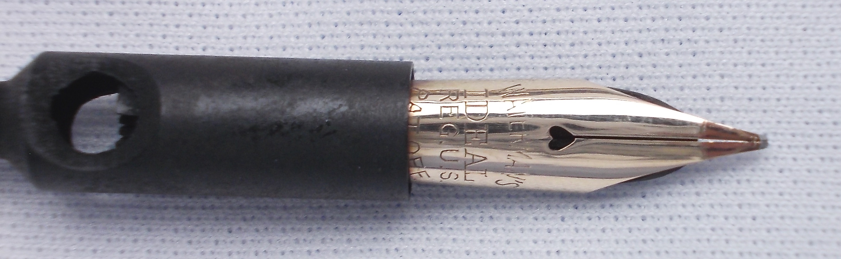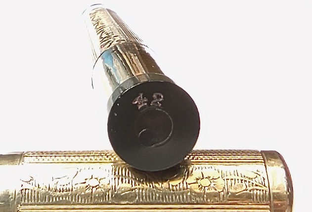 Trovo che il labbro del cappuccio sia insolitamente ma piacevolmente "alto" (così il globo "Ideal" è stato realizzato al di sotto della scritta WATERMAN'S). Ovviamente non c'è più l'iscrizione della sigla (42) sul nottolino di caricamento, se no l'avresti aggiunta alle tue belle fotografie... ;)